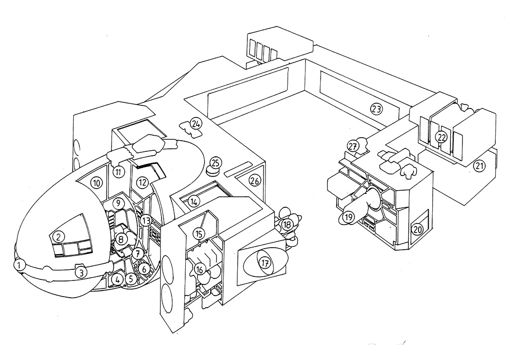 Technische Daten: Länge: ca. 720 m, Breite: ca. 500 m, Höhe: 80 m, Höhe: am Bug 140 m, Besatzung: je ca. 250 Ankrot und Yliaten Beschleunigung: ca. 1.100 km/sec² , ÜL-Faktor ca. 65 Mio. Ausrüstung: 20 Großraumbeiboote (etwa entspr. Space-Jet) und 80 Raumjäger (Steuerbordseitig, gegenüber dem Linearantrieb untergebracht) |