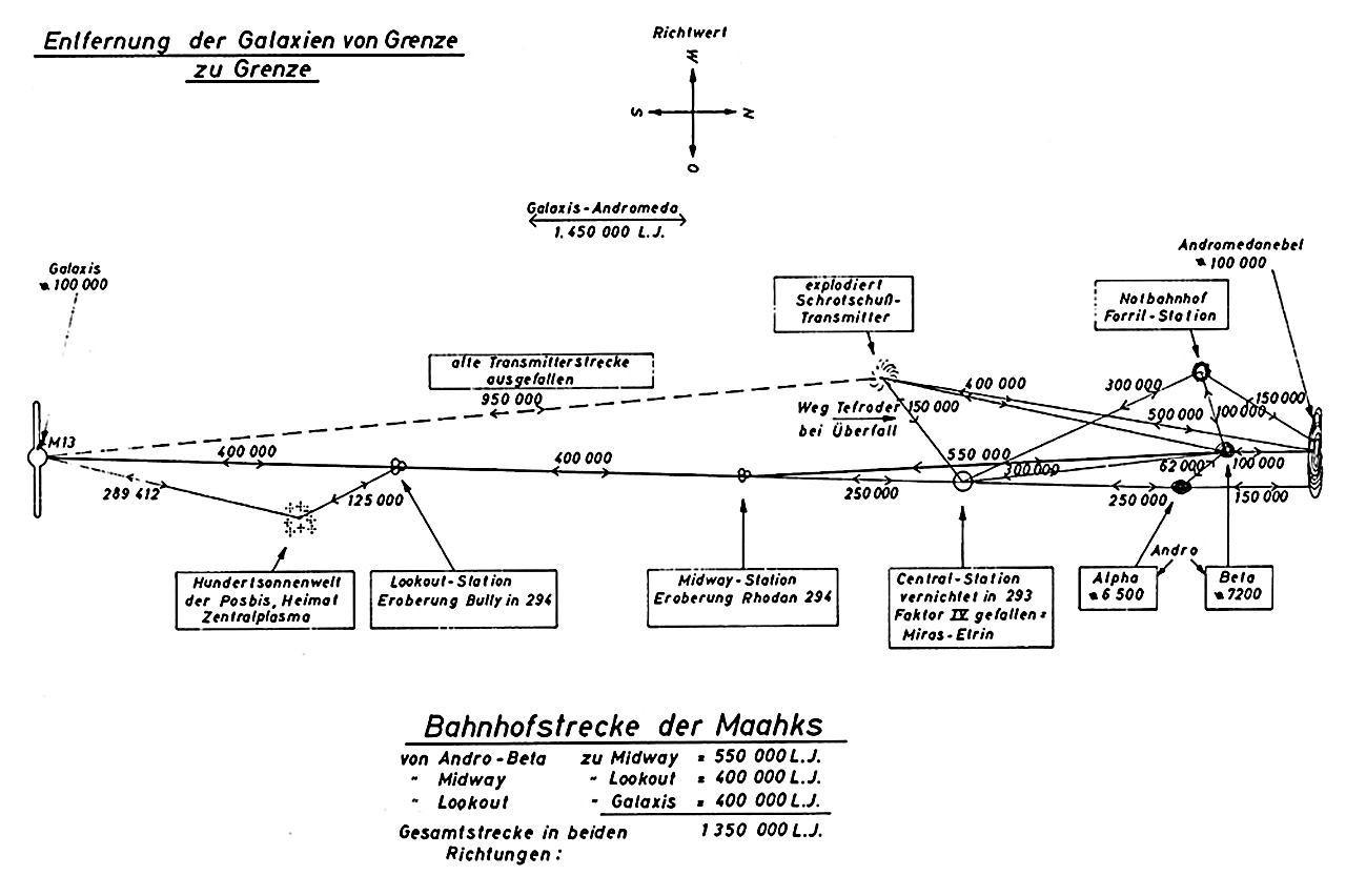 | Die Skizze zeigt die Lage der einzelnen Stationen zwischen den Galaxien. |