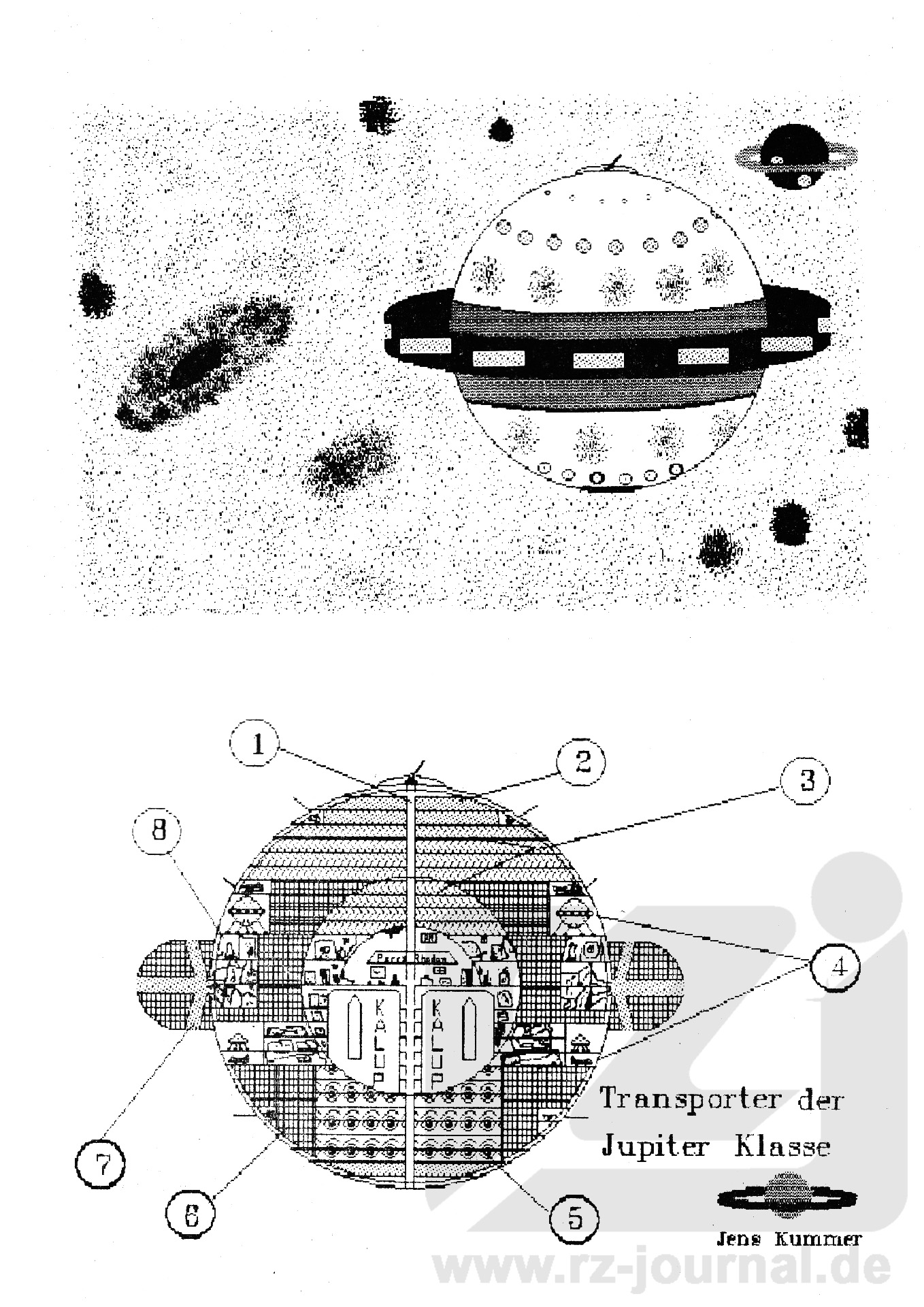 www.rz-journal.de - © by Jens Kummer und Perry Rhodan - published in PR 670 LKS - Abdruck mit freundlicher Genehmigung der Pabel-Moewig Verlag KG, Rastatt Die Verwendung der Zeichnungen auf einer eigenen Homepage ist nur mit Genehmigung des Zeichners, des Verlages und unter Benennung der Bezugsquelle und des Copyrightinhabers gestattet. Verlinkung sind nur auf die Originalquelle zulässig. |