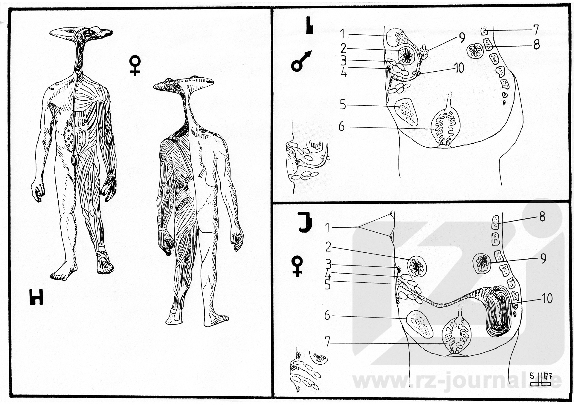 jedoch den weiblichen Eierstöcken ähnlicher) mit daran anschließendem