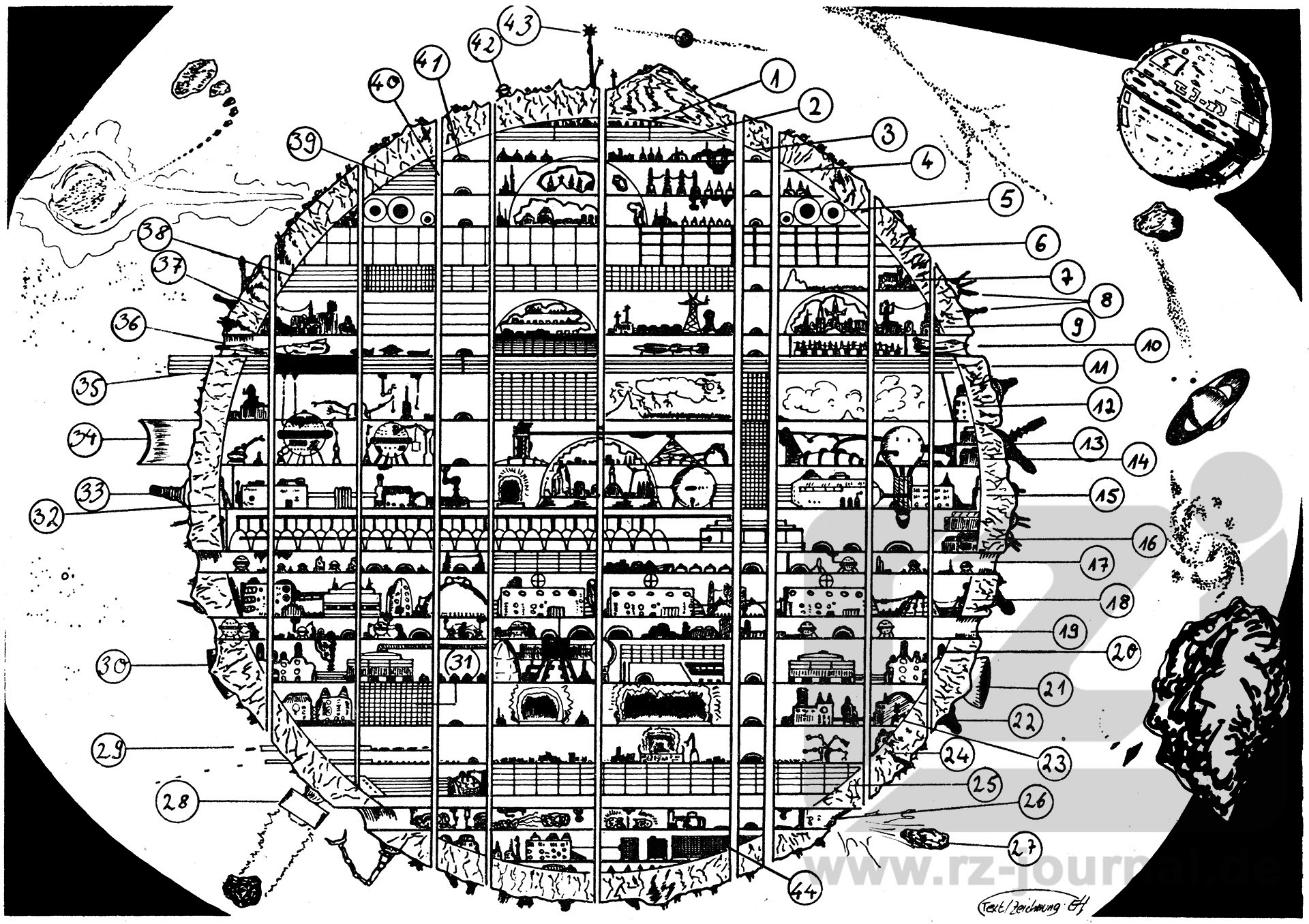 dahinter Medikamentenlager und wissenschaftliche Zentralkuppel, dahinter