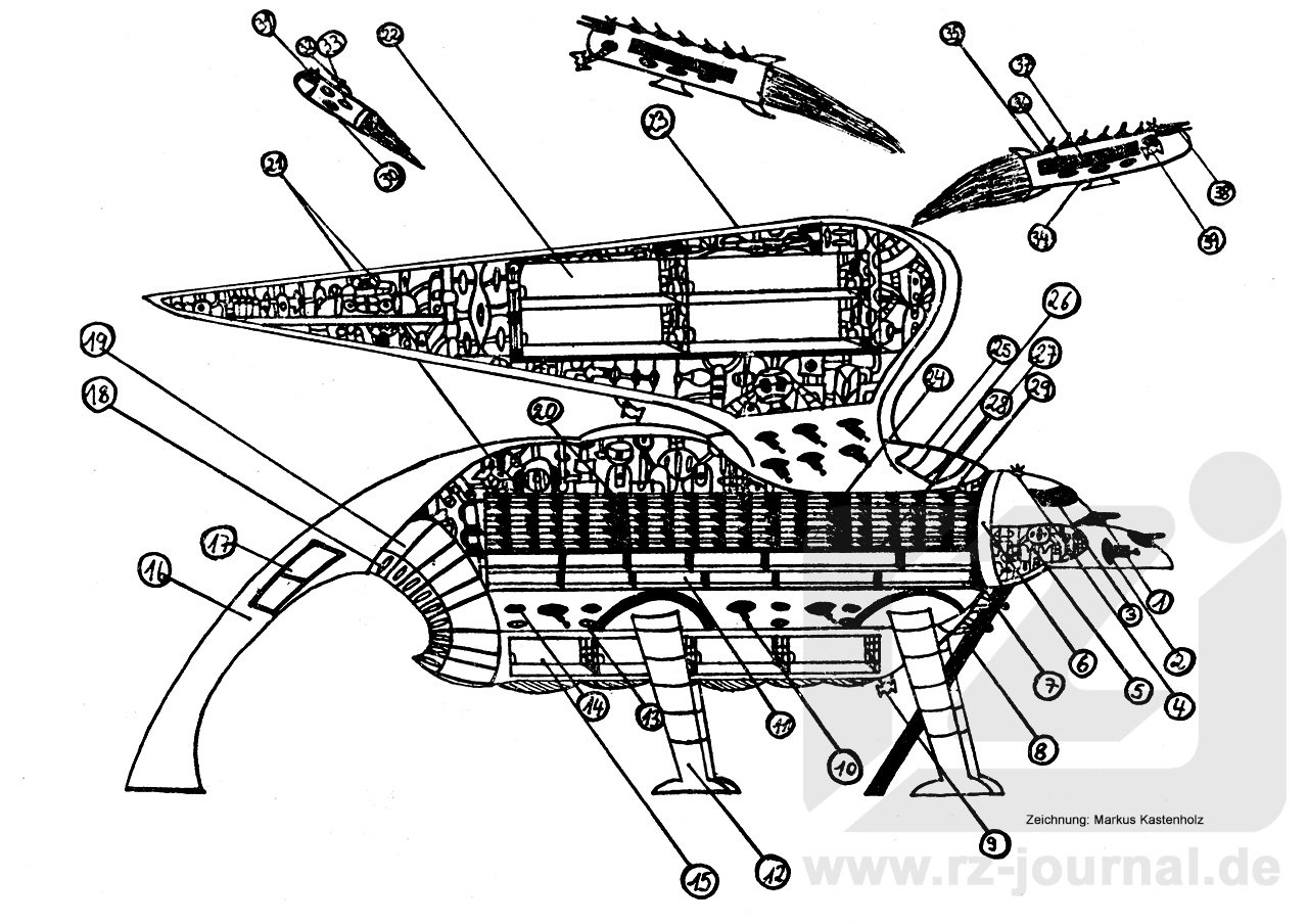 Kommandokapsel kann sich im Ernstfall von dem Schwingenschiff trennen.