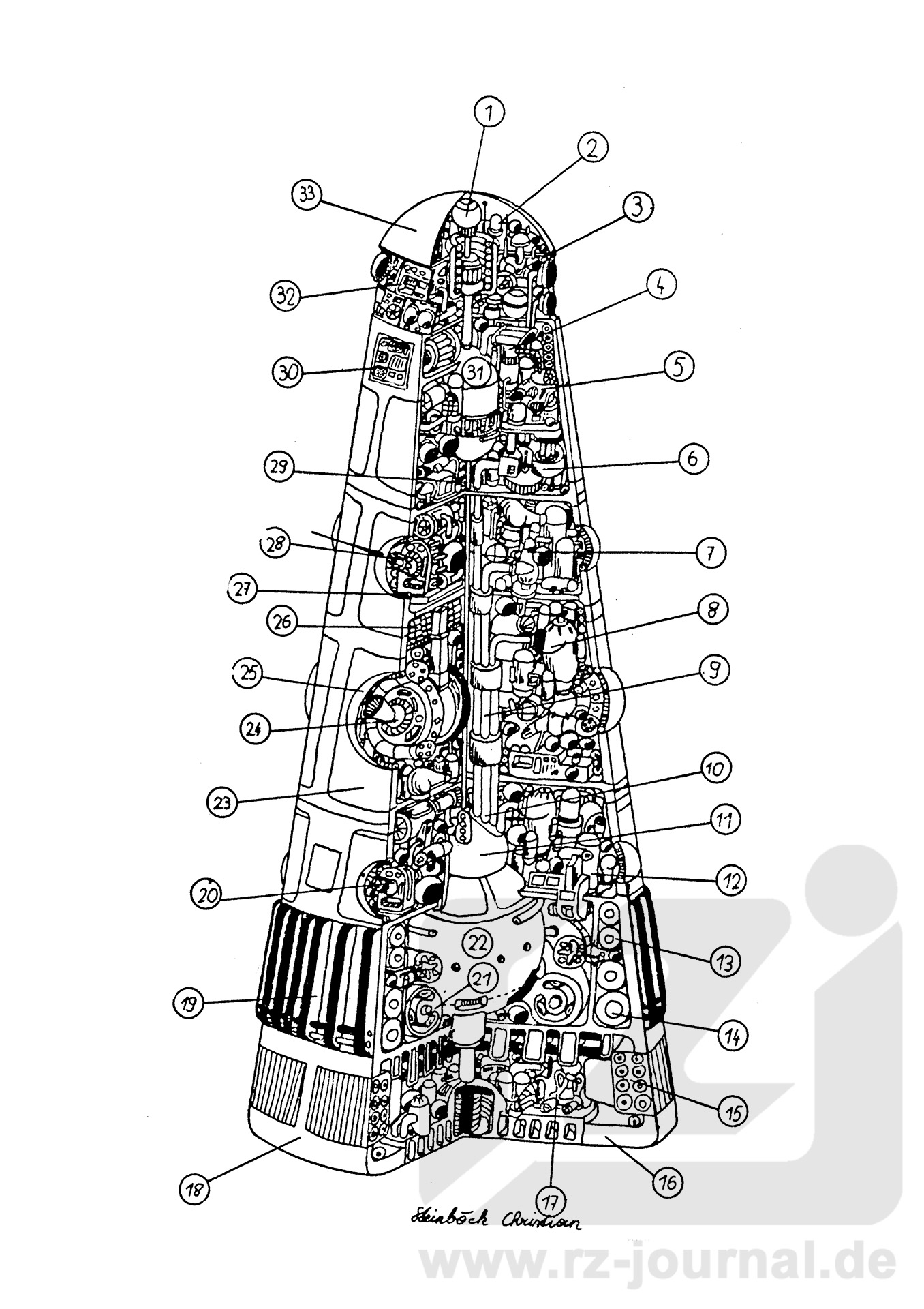 Diese Risszeichnung von Christian Steinböck erschien 1982 im Rahmen des Atlan-Grafikwettbewerbs auf der LKS von Atlan Nr. 236 der 2. Auflage. |