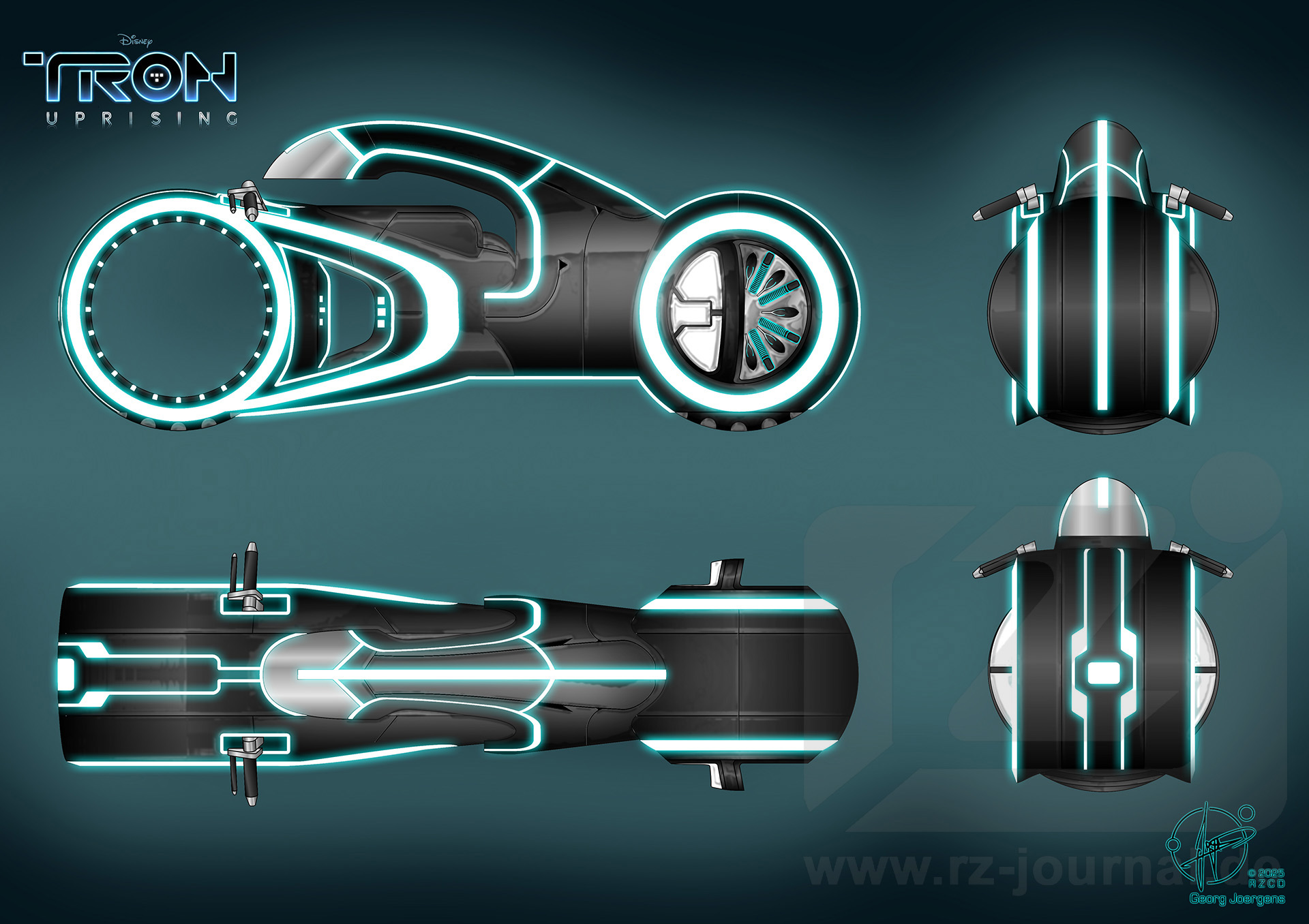 Lightcycle Mehrseitenansicht mit Silhouette |