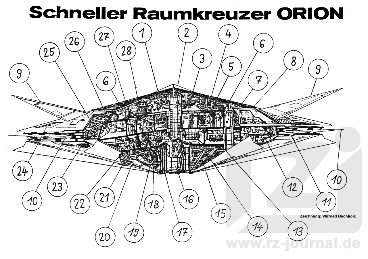 mit Raumüberwachungsstand (Astrogatorpult), Funkleitstand, Zentraler
