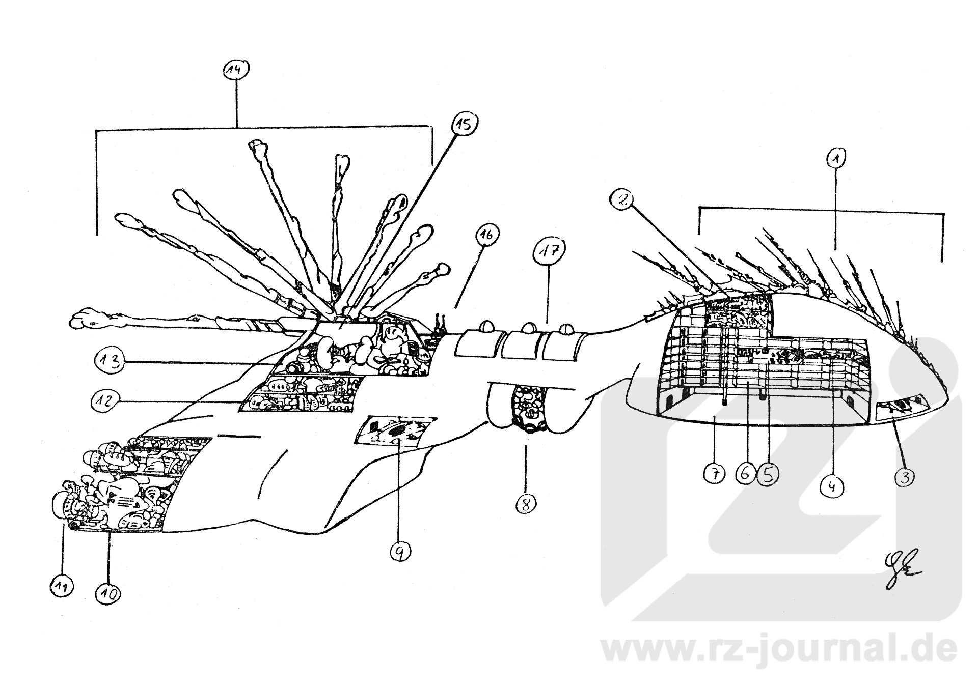 www.rz-journal.de - © by Gerald Kozicz und Perry Rhodan - published in PR 339 LKS - Abdruck mit freundlicher Genehmigung der Pabel-Moewig Verlag KG, Rastatt Die Verwendung der Zeichnungen auf einer eigenen Homepage ist nur mit Genehmigung des Zeichners, des Verlages und unter Benennung der Bezugsquelle und des Copyrightinhabers gestattet. Verlinkung sind nur auf die Originalquelle zulässig. |