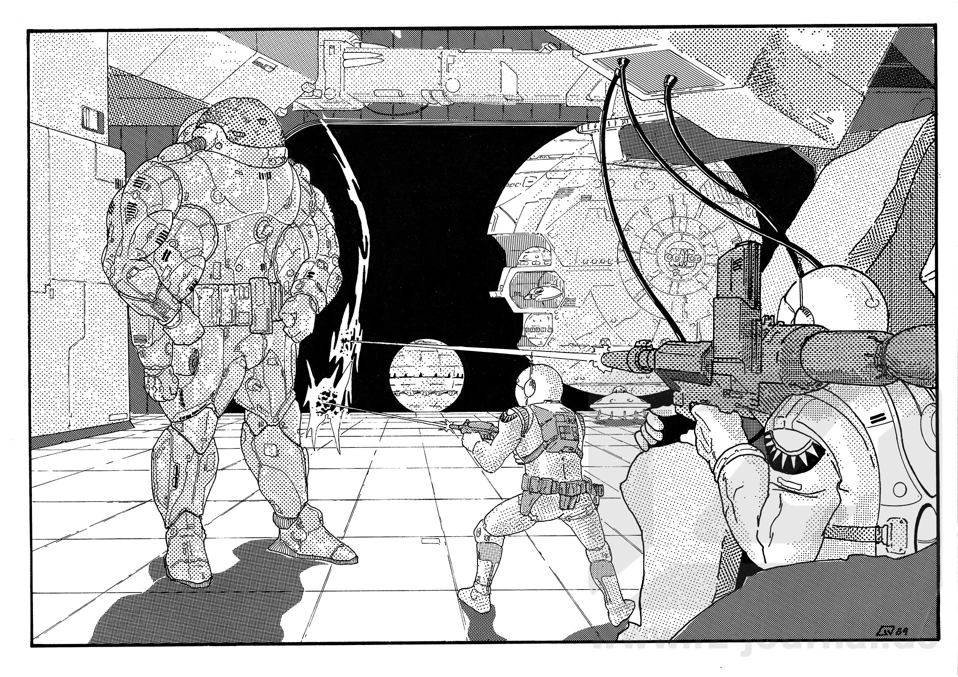www.rz-journal.de - © by Georg Joergens und Perry Rhodan - published in PR 1460 - Abdruck mit freundlicher Genehmigung der Pabel-Moewig Verlag KG, Rastatt Die Verwendung der Zeichnungen auf einer eigenen Homepage ist nur mit Genehmigung des Zeichners, des Verlages und unter Benennung der Bezugsquelle und des Copyrightinhabers gestattet. Verlinkung sind nur auf die Originalquelle zulässig. |