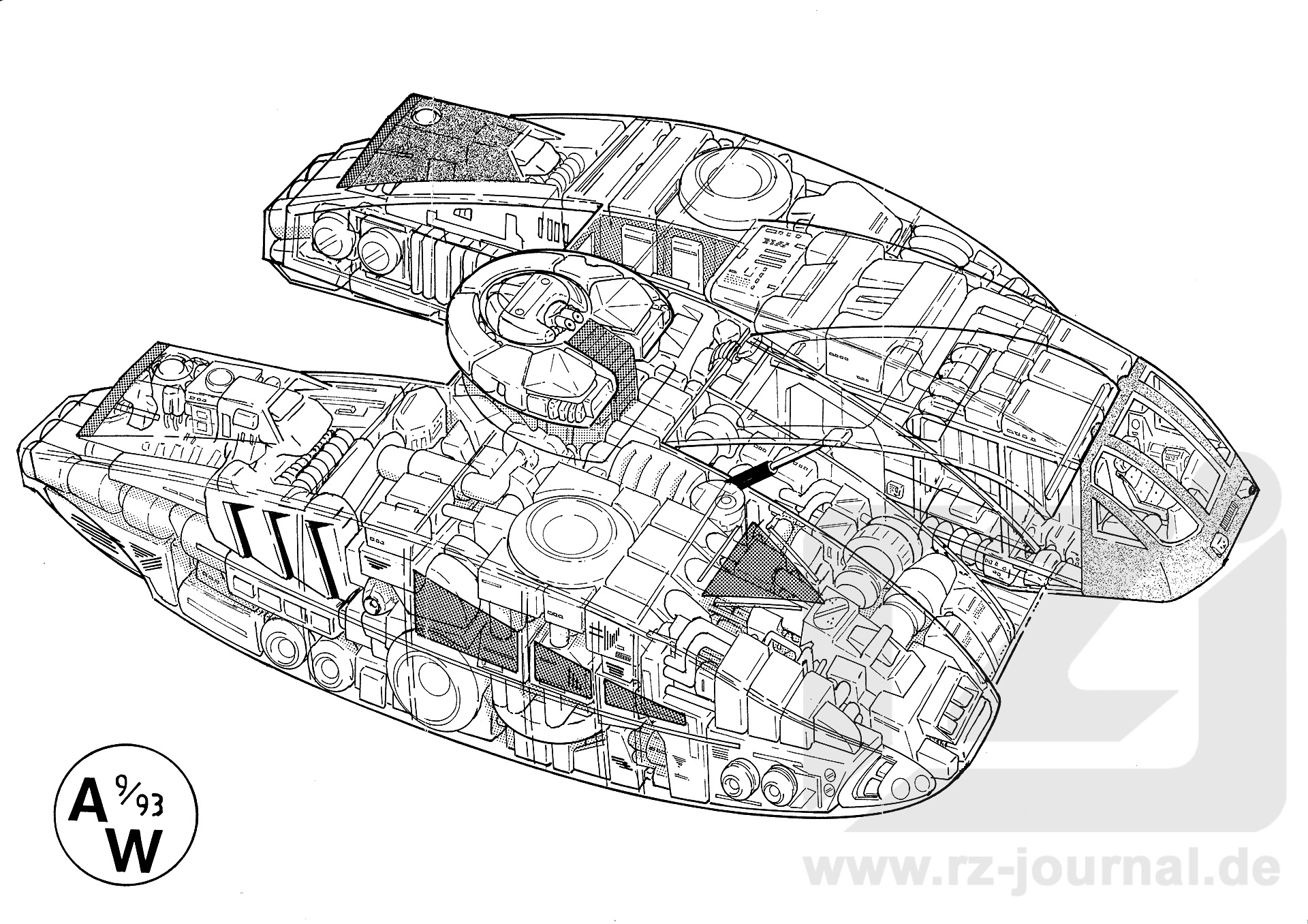 wie der Ashigaru-Shift kommt da für die Feinarbeit gerade recht. Die Zeichnung zeigt einen Ashigaru-Shift in der Schwerlast-Variante. Im Standard-Modell ist die Raumaufteilung etwas anders. z.B. wird dort der Besatzung etwas mehr Raum zugestanden.