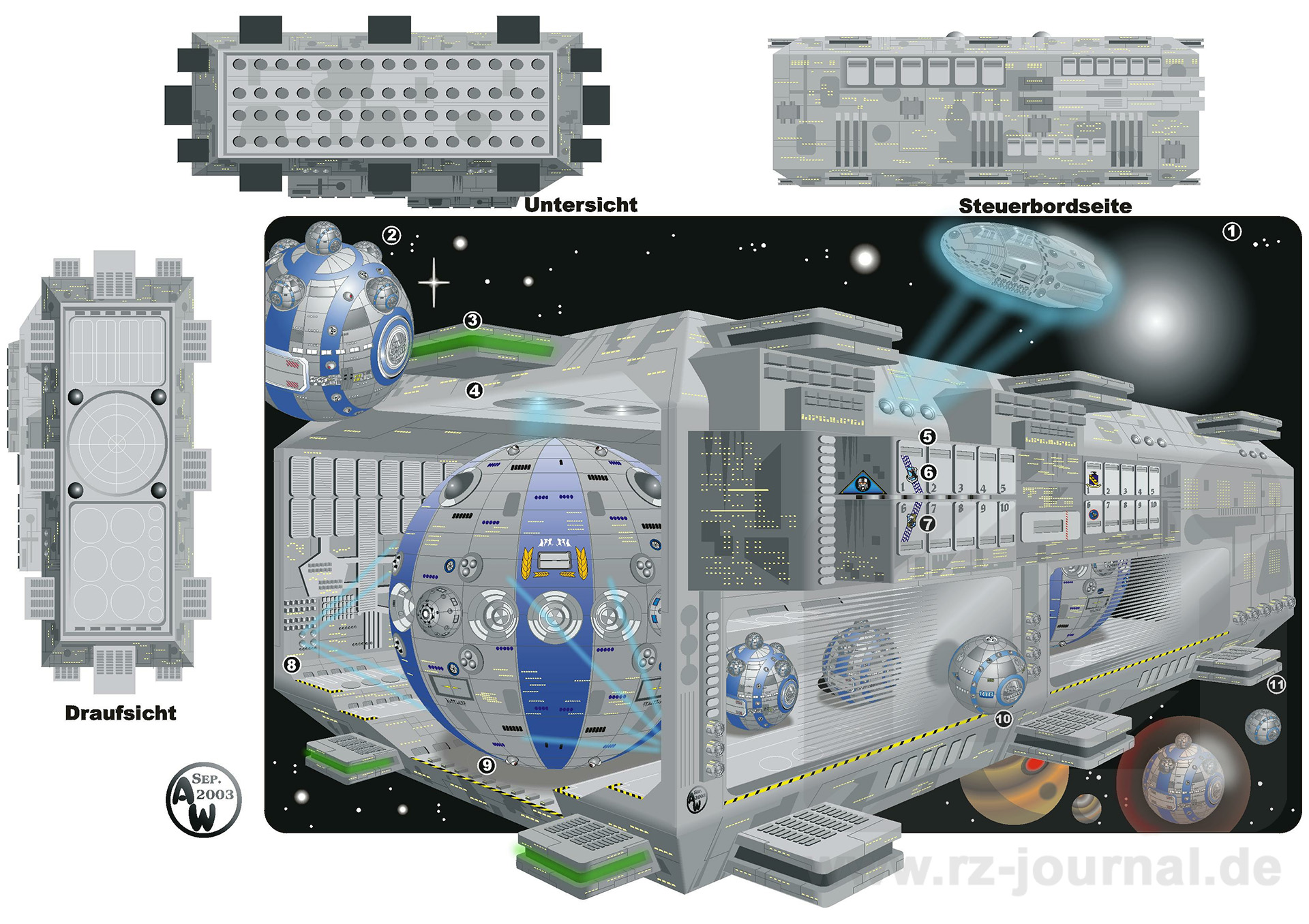 www.rz-journal.de - © by Andreas Weiß und Perry Rhodan - published in PR 2252 - Abdruck mit freundlicher Genehmigung der Pabel-Moewig Verlag KG, Rastatt Die Verwendung der Zeichnungen auf einer eigenen Homepage ist nur mit Genehmigung des Zeichners, des Verlages und unter Benennung der Bezugsquelle und des Copyrightinhabers gestattet. Verlinkung sind nur auf die Originalquelle zulässig. |