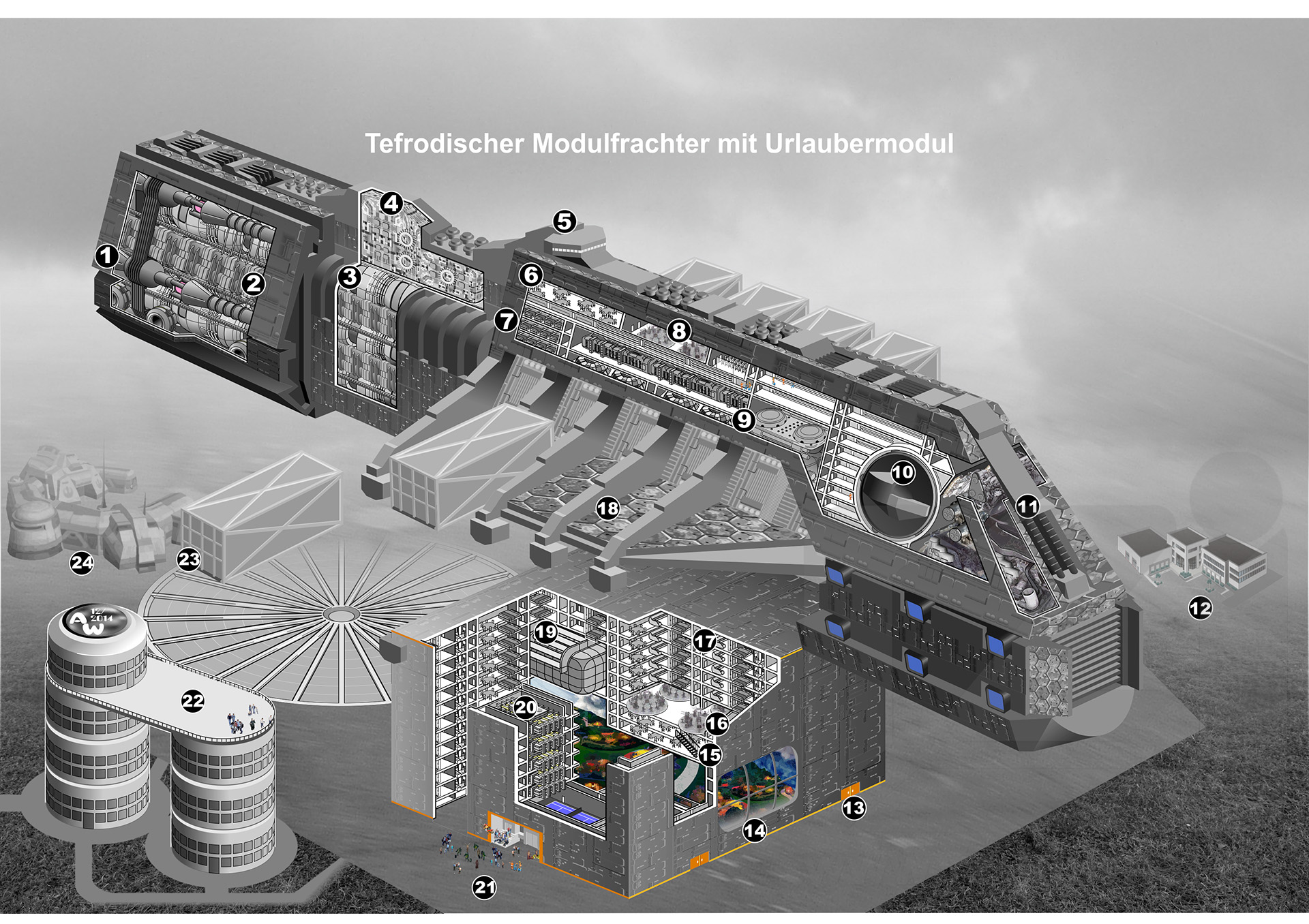 Tefrodischer Modulfrachter mit Urlaubermodul |