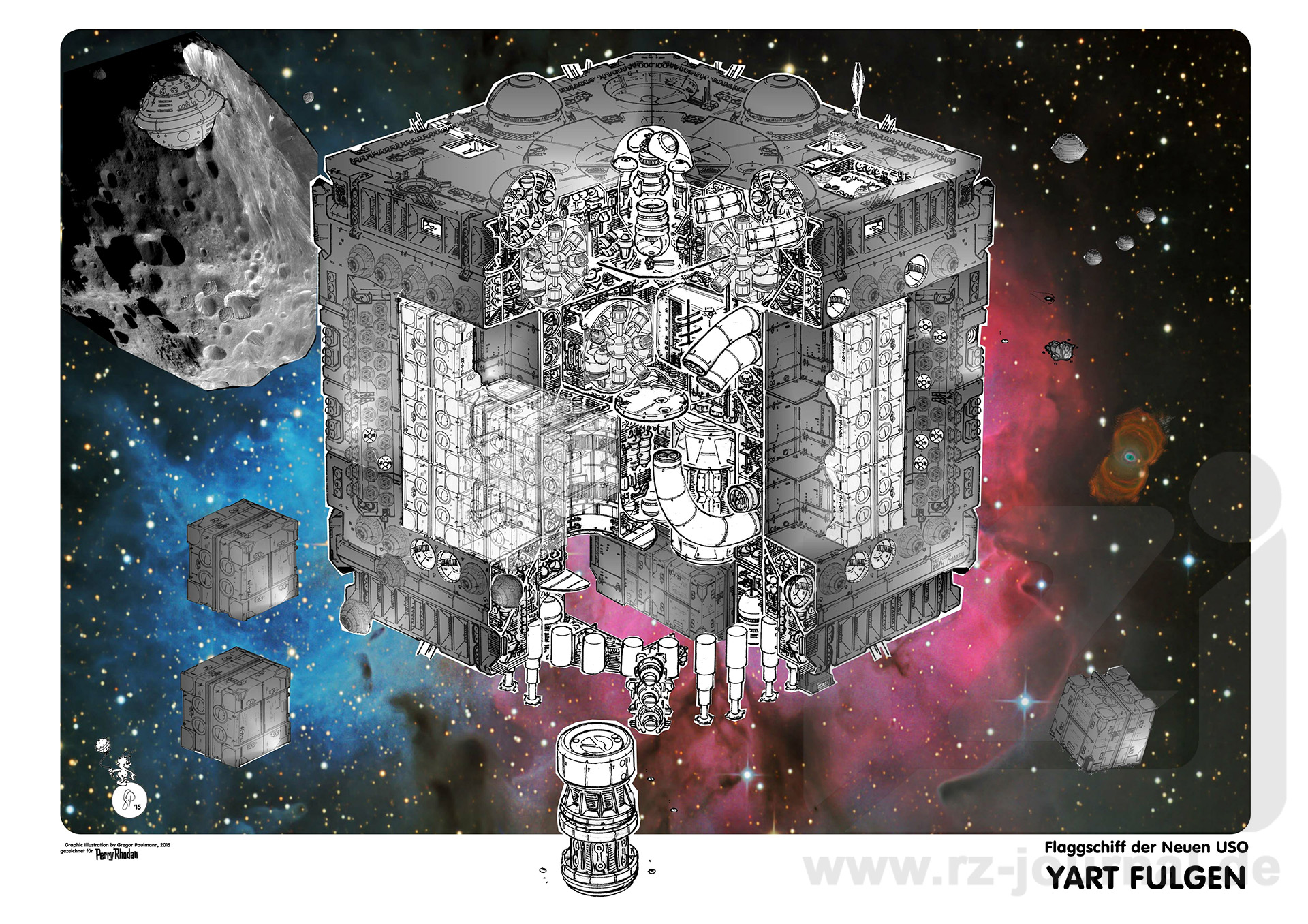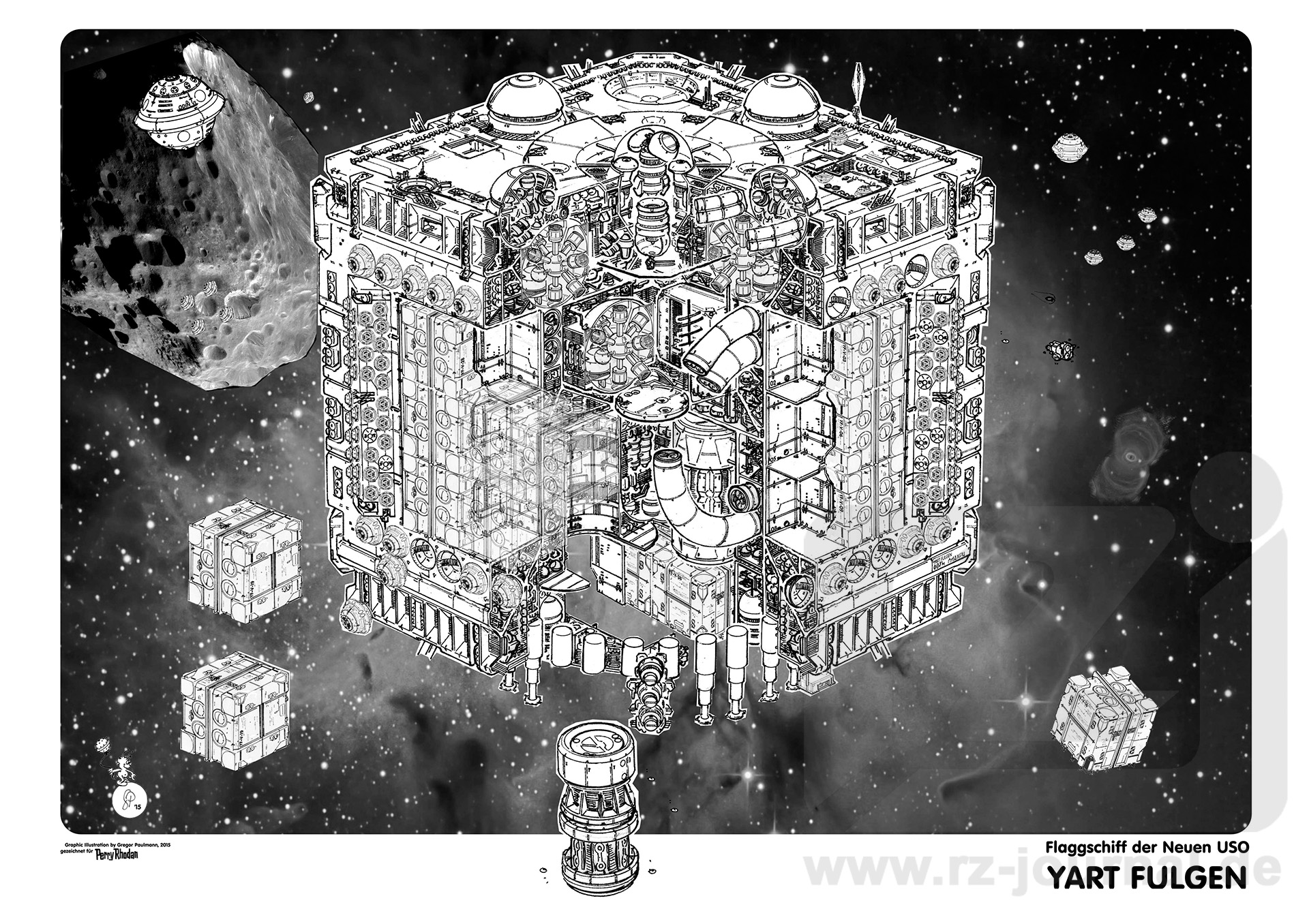 www.rz-journal.de - © by Gregor Paulmann und Perry Rhodan - published in PR 2799 - Abdruck mit freundlicher Genehmigung der Pabel-Moewig Verlag KG, Rastatt Die Verwendung der Zeichnungen auf einer eigenen Homepage ist nur mit Genehmigung des Zeichners, des Verlages und unter Benennung der Bezugsquelle und des Copyrightinhabers gestattet. Verlinkung sind nur auf die Originalquelle zulässig. |