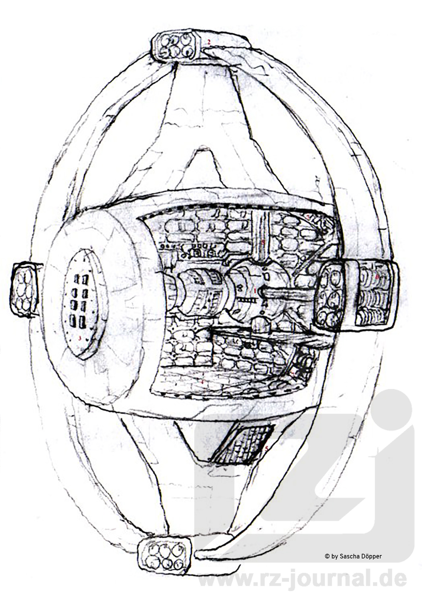 Technische Daten: Länge: 140 m Durchmesser Waffenträger: 200 m |