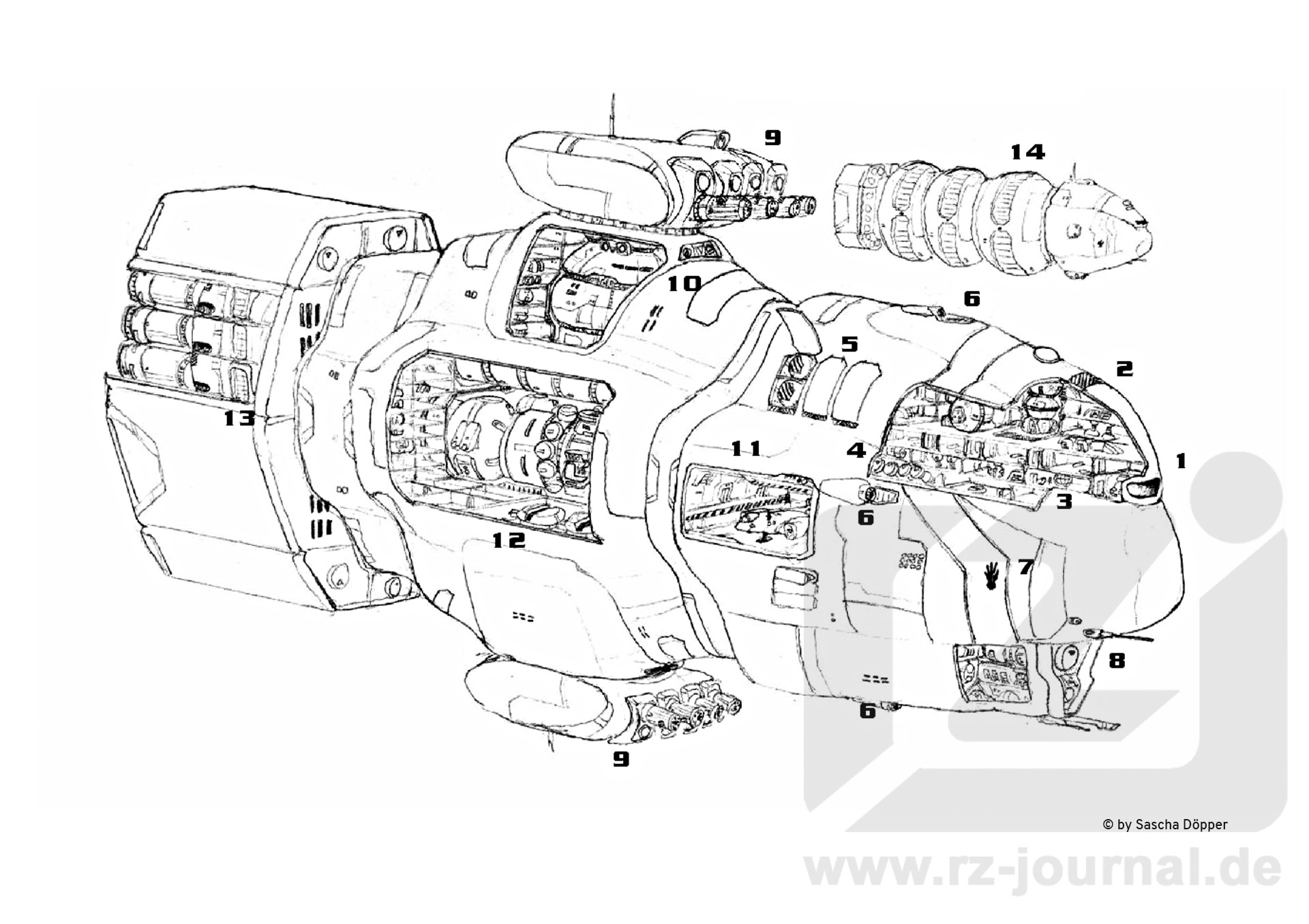 Abmessungen: Länge 200 Raidem, 166 m) Höhe 110 Raidem (91,3 m) Breite 70 Raidem (58,1 m) Triebwerke: 30 Materie-Antimaterie Triebwerke mit einer Schubkraft von je 700 Megapond Energie: 2 separate Materie-Antimaterie Reaktoren Besatzung: 15 Mann Bewaffnung: 4 Gravokompressor Gatlings gelagert in 2 Geschütztürmen, 4 Nano(Kaskaden)laser Beiboote: ein Versorgungshangar für Beiboote bis 30 Raidem Grösse, 12 Rettungskapseln |