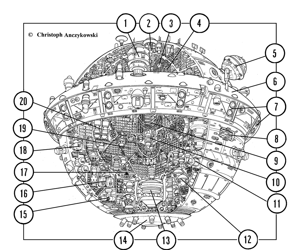 Die Kommandoeinheit der PEGASOS hat einen Durchmesser von 240 Meter und ist seitlich in die Plattform des umgebauten PINWHEEL-Tenders eingeklinkt. Bei ihrer Grundkonstruktion handelt es sich um die stark modifizierte Zelle eines Schweren Kreuzers der OLYMP-Klasse, die teilweise entkernt wurde. Der so gewonnene Platz ermöglichte den Einbau von zusätzlichen Steuerzentralen, Sicherheits- und Ortungssystemen, weitreichenden Kommunikationssystemen, dem redundanten Positronik-Netzwerk des Tenders, eines Labortrakts, einer Medoeinheit mit Fremdrassenkapazitäten sowie deutlich vergrößerte Quartiere für die Besatzung und Passagiere. Bei Bedarf kann die Kommandoeinheit von der PEGASOS abgesprengt werden und funktioniert so als vollwertiges Rettungsschiff. Für die Fernflugfähigkeit sorgen ein Notfall-Transitionstriebwerk mit einer Sprungweite von bis zu 5 Lichtjahren. Ein Teil der der ausgelagerten Kreuzer-Aggregate wurde in den Ringwulst integriert oder können auch optional an die Außenhülle montiert werden, um die technischen Möglichkeiten der Kernzelle im autarken Einsatzmodus zu verbessern. Hier finden sich zusätzliche Energiesysteme, optional auch ein TEVER II - Konverter für den Linearflug und externe Docking-Vorrichtungen für größere Beiboote. Die passiven Schutzsysteme bestehen aus einem Prall- und einem PARATRON-Schirmfeld, Offensivwaffen werden nur in Sonderfällen mitgeführt |