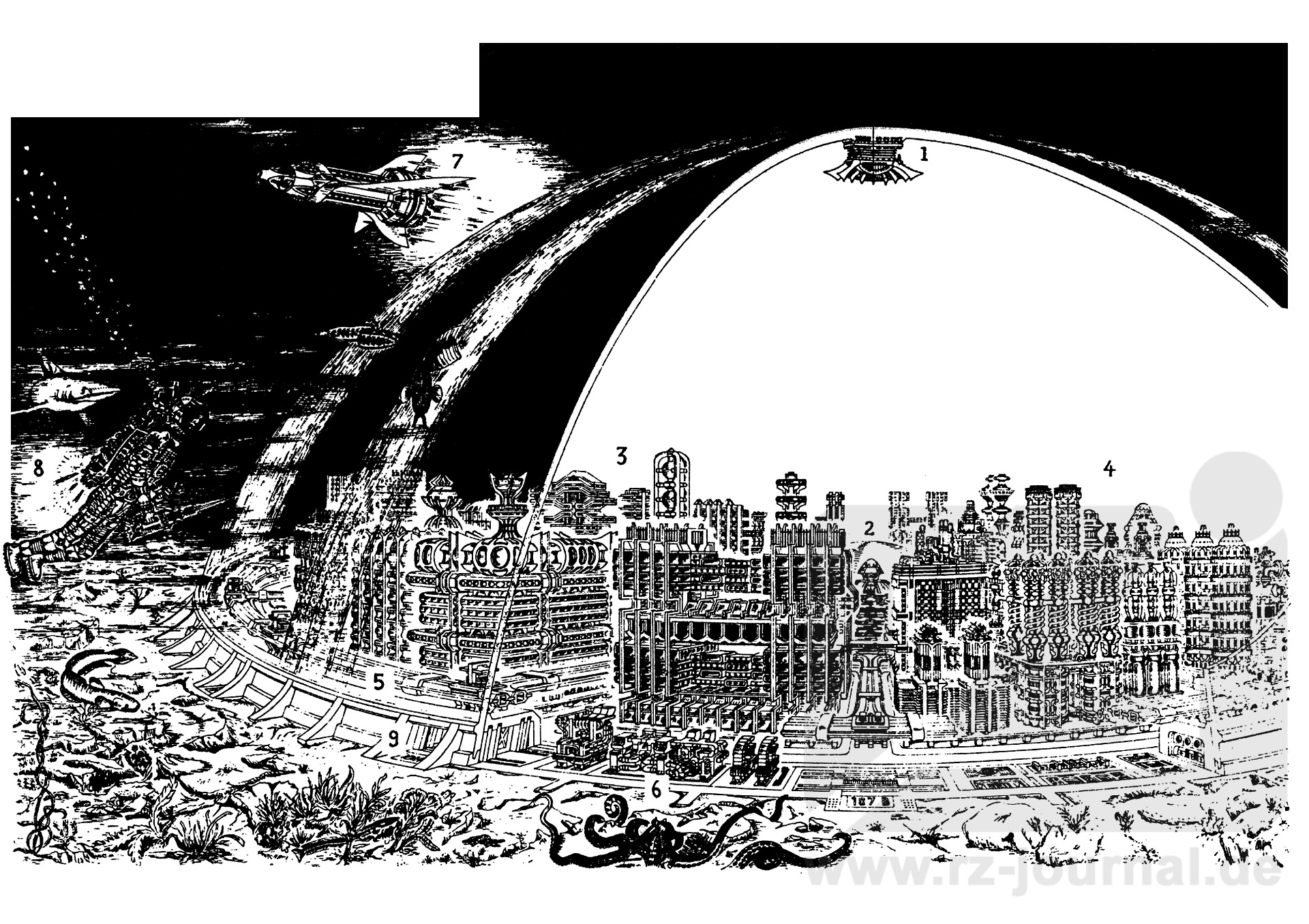 Allgemein Atlans Unterwasserkuppel liegt am Grunde des Pazifiks, in der Nähe des versunkenen Kontinents Atlantis. Atlan zog sich für lange Epochen in die Kuppel zurück, um sich In Tiefschlaf zu versetzen. Nach jedem Erwachen beobachtete er die Entwicklungsphase der Menschheit. Die Kuppel aus Arkonstahl wird zusätzlich noch von einem energetischen Schutzschirm geschützt. |