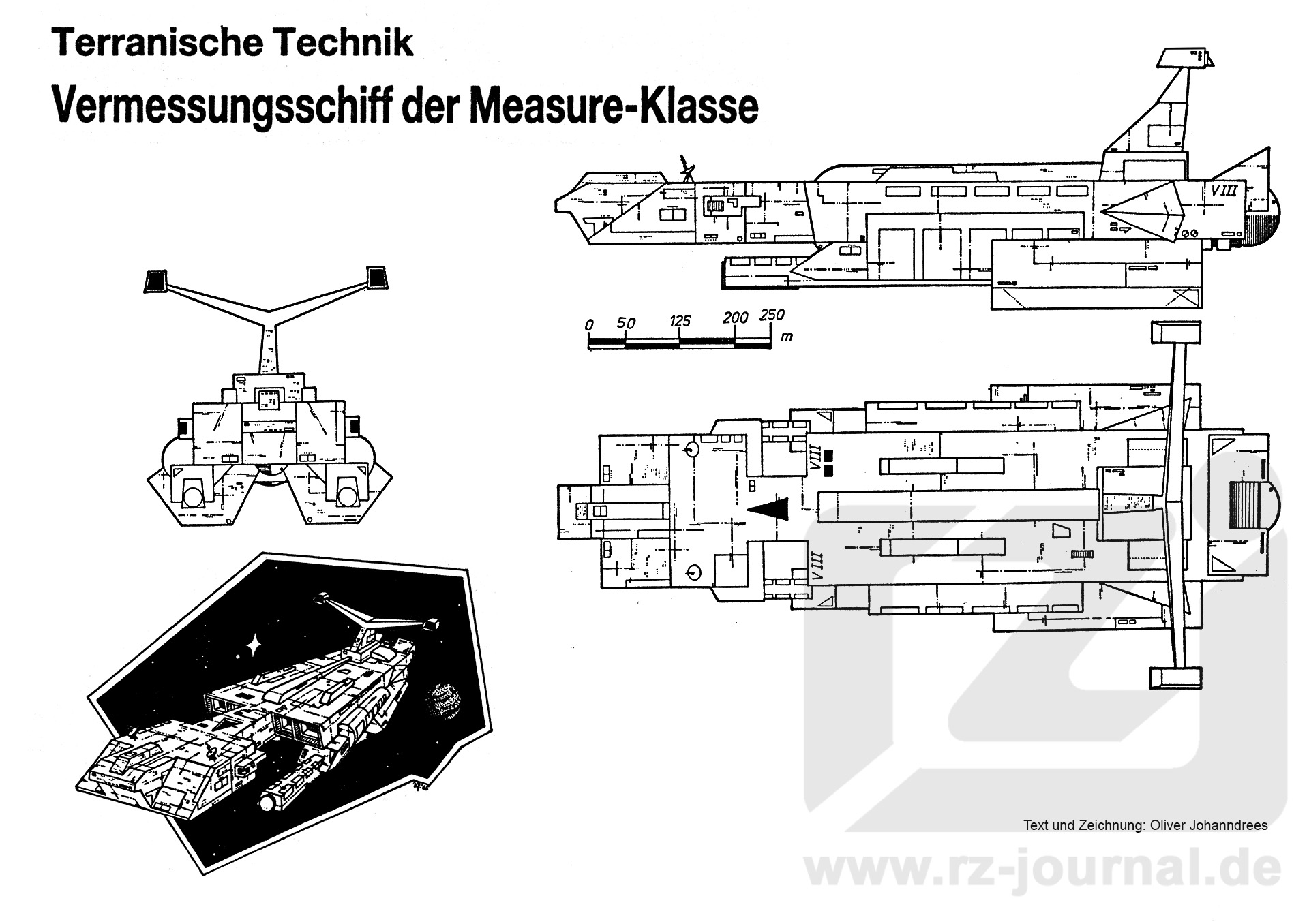 Dieser Schiffstyp, der im Jahre 3247 von der Firma USC Ltd. (United Ship Constructions Limited) im Auftrag der terranischen Flotte konzipiert wurde, sollte zum einen die veralteten Schiffe der Discovery-Klasse ablösen, zum anderen aber auch wesentlich bessere Vermessungsergebnisse bringen. Da die Measure-Schiffe eine überaus zufriedenstellende Leistung bringen, wurden von diesem Typ lediglich drei Einheiten vom Stapel gelassen. Sie wurden mit dem Namen „VICTORYI-Ill“ benannt und erfüllen unter dieser Bezeichnung weiterhin ihre Aufgabe. Die Konstruktionen dieser Schiffe gerieten jedoch wegen ihrer Größe schnell ins Sperrfeuer des öffentlichen Interesses. Es muß hier aber angeführt werden, daß es sich, wie gesagt, nur um drei Einheiten dieses Typs handelt und eine Bauausführung im Sinne der Effektivität nicht anders zu realisieren war. Dennoch stellten diese Schiffe im 33. Jahrhundert den aktuellen Stand der Technik dar und fanden unter den Experten der Flotte von Anfang an ihre Zustimmung. Das Einsatzgebiet der Vermessungsraumer beläuft sich auf den gesamten Bereich der Milchstraße. Die technischen Kapazitäten und die Qualtiät der Mannschaften haben bereits jetzt gezeigt, wie gut es war, die kleine Baureihe dieses Typs in Betrieb zu nehmen. Inzwischen sind viele, bisher noch offenstehende Abschnitte des Sternenkataloges ausgefüllt worden und es bleibt zu hoffen, daß weitere Erfolgsmeldungen auf diesem Gebiet nicht auf sich warten lassen. Das einzige Problem, das den Technikern bereits seit Einführung der Schiffe zu schaffen macht, ist die merkwürdige Tatsache, daß einen die Notbeleuchtung genau in dem Moment verläßt, wo man sie am nötigsten braucht. Das Problem ist zwar nicht sonderlich aufsehenerregend, es läßt aber dennoch in gewisser Weise am Können unserer Techniker zweifeln, die es bisher noch nicht geschafft haben, die immer wieder auftretenden Fehlerquellen effektiv zu bekämpfen. Ein Rätsel, das sogar unserer Zeit scheinbar noch verborgen bleibt...
