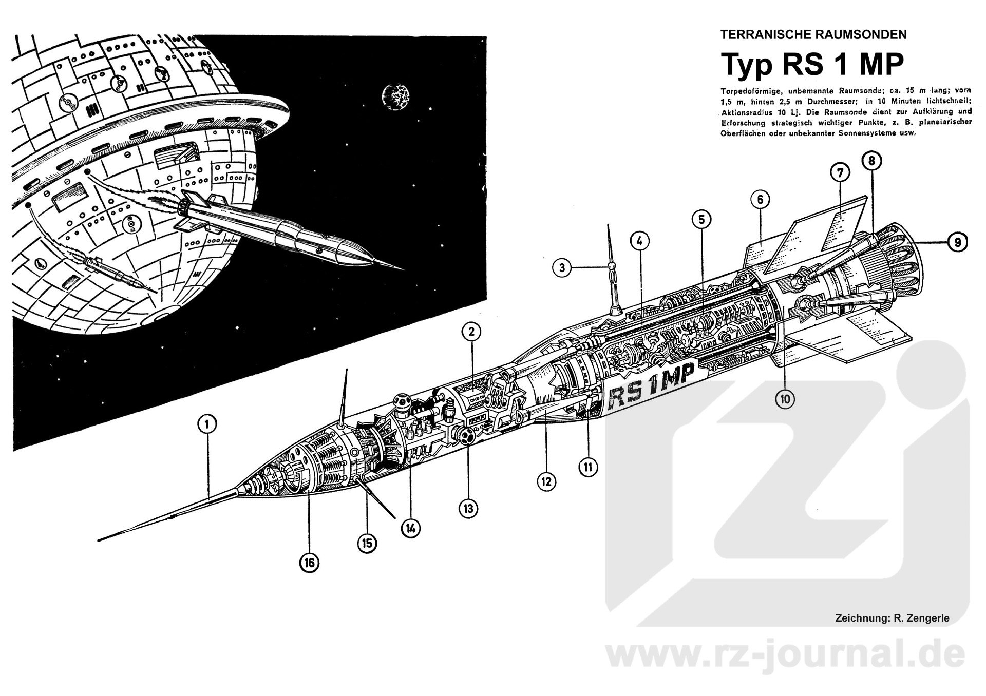 Allgemeines: Torpedoförmige, unbemannte Raumsonde; ca. 15 m lang; vorn 1,5 m, hinten 2,5 m Durchmesser; in 10 Minuten lichtschnell; Aktionsradius 10 Lj. Die Raumsonde dient zur Aufklärung und Erforschung strategisch wichtiger Punkte, z. B. planetarischer Oberflächen oder unbekannter Sonnensysteme usw. |