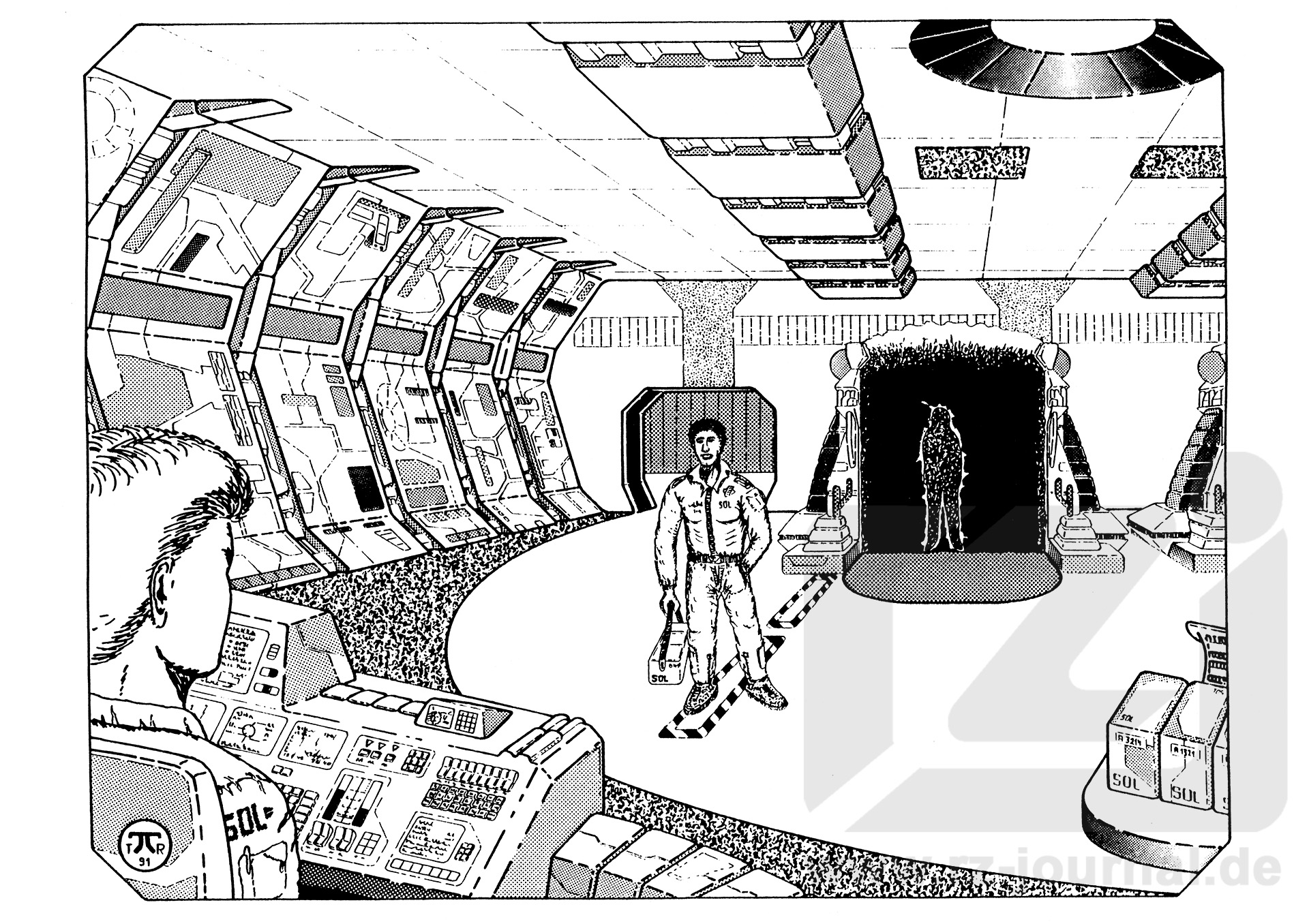 Transmitter sind im 35.Jahrhundert längst selbstverständlich. So ist es kein Wunder, das die ehemalige solare Flotte sämtliche ihrer Schiffe mit Transmittersystemen ausgerüstet hat. Unter ihnen befindet sich auch das gewaltige Fernraumschiff SOL. Zu sehen ist eine Personentransmitterstation in der SOL- Hauptzelle. Mit diesen Transmittern wird aber nicht nur ein Personentransfer zwischen verschiedenen Schiffen oder Stützpunkten vorgenommen. Gerade an Bord der riesigen SOL wird der Transmitter, aufgrund der teilweise immensen Wege, gerne als Transportmittel genutzt. Zusätzlich werden aber auch Güter, seien es Nahrungsmittel oder Ersatzteile, bis zu einer bestimmten Größe verschickt. Einige Materialkisten sind z.B. auf einem Antigravschweber rechts unten zu erkennen. Diese Güter werden aus einem Zentrallager in der Nähe geholt und durch das Transmitternetz über das Schiff verteilt. Der abgebildete Transmitter vom Typ WEGA 3-b ist kostengünstig einsetzbar. Ausgezeichnete Zuverlässigkeit und geringer Wartungsaufwand machen ihn zu einem der gebräuchlichsten Transmittertypen. Die vier Transmitter dieser Station werden von einem zentralen Sammelschaltpult aus bedient. Die Bedienung kann von einem einzigen Transmittertechniker vorgenommen werden. Es können Gegenstände mit einer Höhe und einer Breite von 3m x 3m befördert werden. In Notfällen kann die Transmitterpositronik ein Energiefeld um den Transmitter legen, damit die Umgebung vor Energieausbrüchen geschützt wird. Außerdem ist bei jedem Transmitter ein Notenergiespeicher vorhanden, um den Betrieb noch 10 Minuten nach einem Energieausfall aufrechterhalten zu können. Falls es nötig sein sollte, kann jeder Transmitter von seiner Rückfront aus manuell gesteuert werden. An Bord der drei SOL-Zellen gibt es insgesamt 42 Transmitterstationen. Darin enthalten sind auch 3 große Materialtransmitter. Mit dem Transmitternetz an Bord der SOL wurde ein gut funktionierendes Transportsystem geschaffen, welches gleichzeitig als Rettungssystem dienen sollte. Umso erstaunlicher war für Perry Rhodan und die SOL-Besatzung die Tatsache, dass die Transmitter während des Zwangsaufenthaltes auf Last Stop nicht funktionierten. So konnte die Besatzung nicht auf die SOL-Zelle 2 evakuiert werden. Da kein Fehler entdeckt werden konnte, musste man davon ausgehen, dass die Kelosker im Besitz eines Störsystem waren. Obwohl die später aus Balayndagar geretteten Kelosker nichts über ein solches System Zugaben, war man sich dessen sicher. Nach dem Start von Last Stop und dem Flug durch das Black Hole funktionierten sämtliche Transmitter wieder normal. Aus dem täglichen Alltag der SOL sind diese Transmittersysteme nicht mehr wegzudenken. Das hat man während des Aufenthaltes auf Last Stop erkannt. |