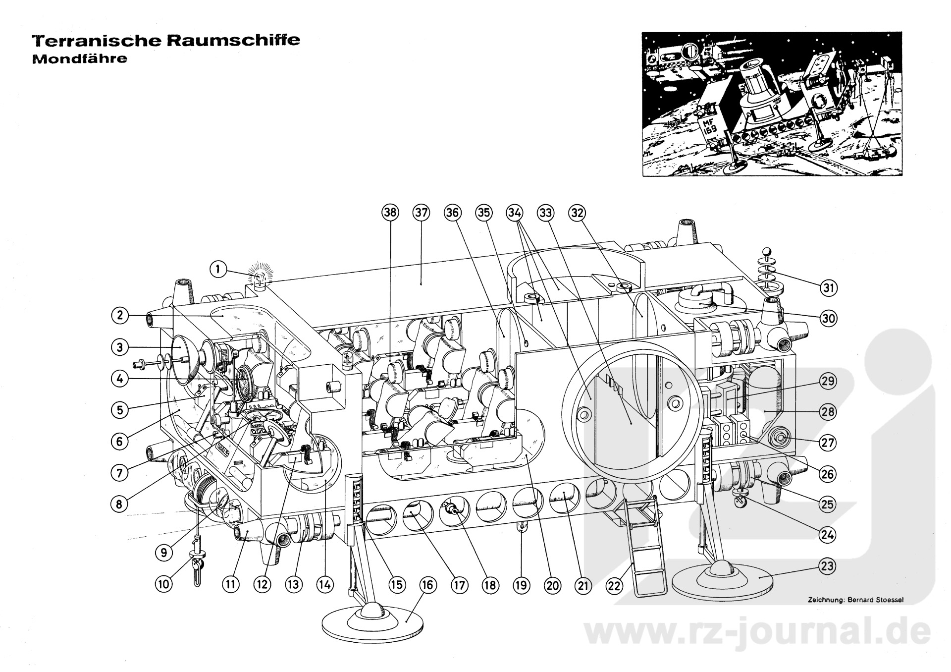 Allgemeines: Diese 8 m langen, 4 m breiten, und 2,5 m hohen Raumfahrzeuge werden für leichte Fracht- und Personentransporte über der Oberfläche von atmosphärelosen Monden verwendet. Außerdem kommen sie als Verbindungsbeiboote von und zu Raumschiffen und Raumstationen in einer Orbitbahn zum Einsatz. Da der Antrieb nur über kleine Impulstriebwerke erfolgt und die Fähre weder Antigravantrieb noch Schwerkrafterzeuger mit Andruckneutralisatoren besitzt, ist ihre maximale Beschleunigung auf 3 g beschränkt. Als reine Frachtversion haben die Fähren eine Besatzung von 2 Mann sowie eine Ladefläche von 5 x 4 m und eine Tragkraft von fünf Tonnen. Durch zwei Seilwinden kann auch sperrige Fracht unterhalb des Schiffes getragen werden. Die Passagierversionen besitzen anstelle der Ladefläche einen Passagierraum mit acht Beschleunigungssitzen sowie einen Schleusenraum. |