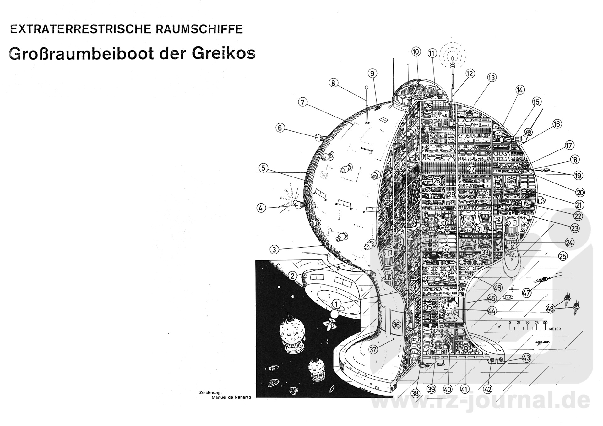 Allgemeines: Dieses Raumschiff wird von dem friedfertigen Konzilsvolk der Greikos auf ihren Wohnplattformen als großes Verbindungsboot und Wasserstoff-Versorger (der im Bedarfsfall für Kernfusionsreaktoren notwendig ist) benutzt. Die Bewaffnung ist rein defensiver Art und wird nur im äußersten Notfall eingesetzt. Sonst werden die zwei ringförmig angelegten Aggregatkomplexe zum Ansaugen und Verarbeiten von kosmischem Wasserstoff benutzt. Technische Daten: Länge: 800 Meter; Breite: 665 Meter; Heckdurchmesser: 470 Meter; kleinster Durchmesser: 250 Meter; Beschleunigung: 725 km/s²; Besatzung: 75 Greikos (da fast vollständig robotisiert); Höchstaufnahme: 2000 Greikos. |