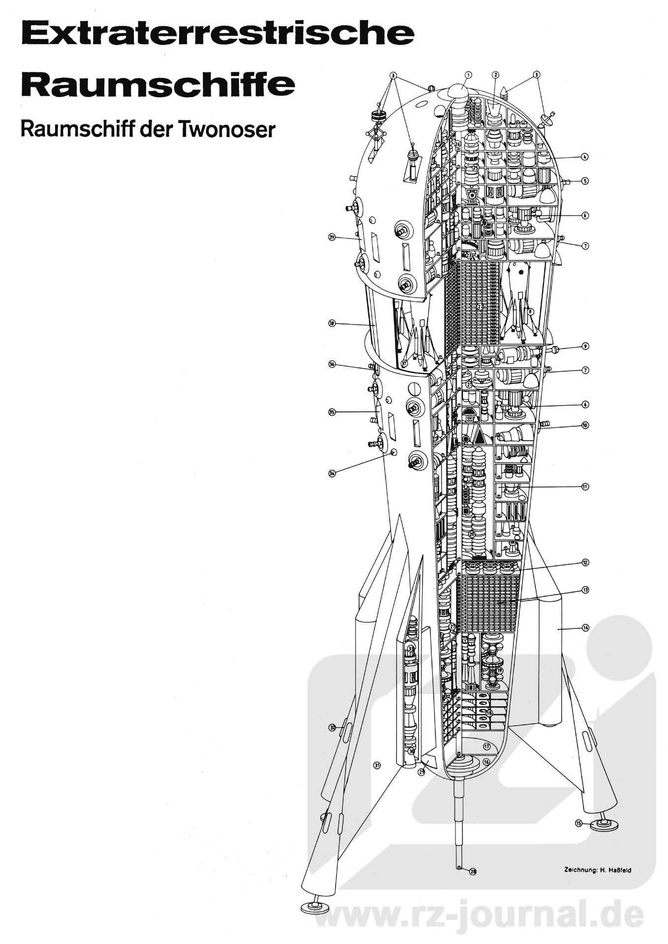 Allgemeines: Diese Raumschiffstypen wurden von den Twonosern verwendet. Die Twonoser wurden von den Meistern der Insel (MdI) als Hilfsvolk zur Bewachung der Satellitengalaxis Andro-Beta eingesetzt. Sie bewohnten Planeten und teilweise erstarrte Mobys. Technische Daten: Rumpflänge: 500 m Rumpfbreite: 150 m Höchstbeschleunigung: 500 km/sec² Reichweite: 1 000 000 Lj. Besatzung: 600 Mann |