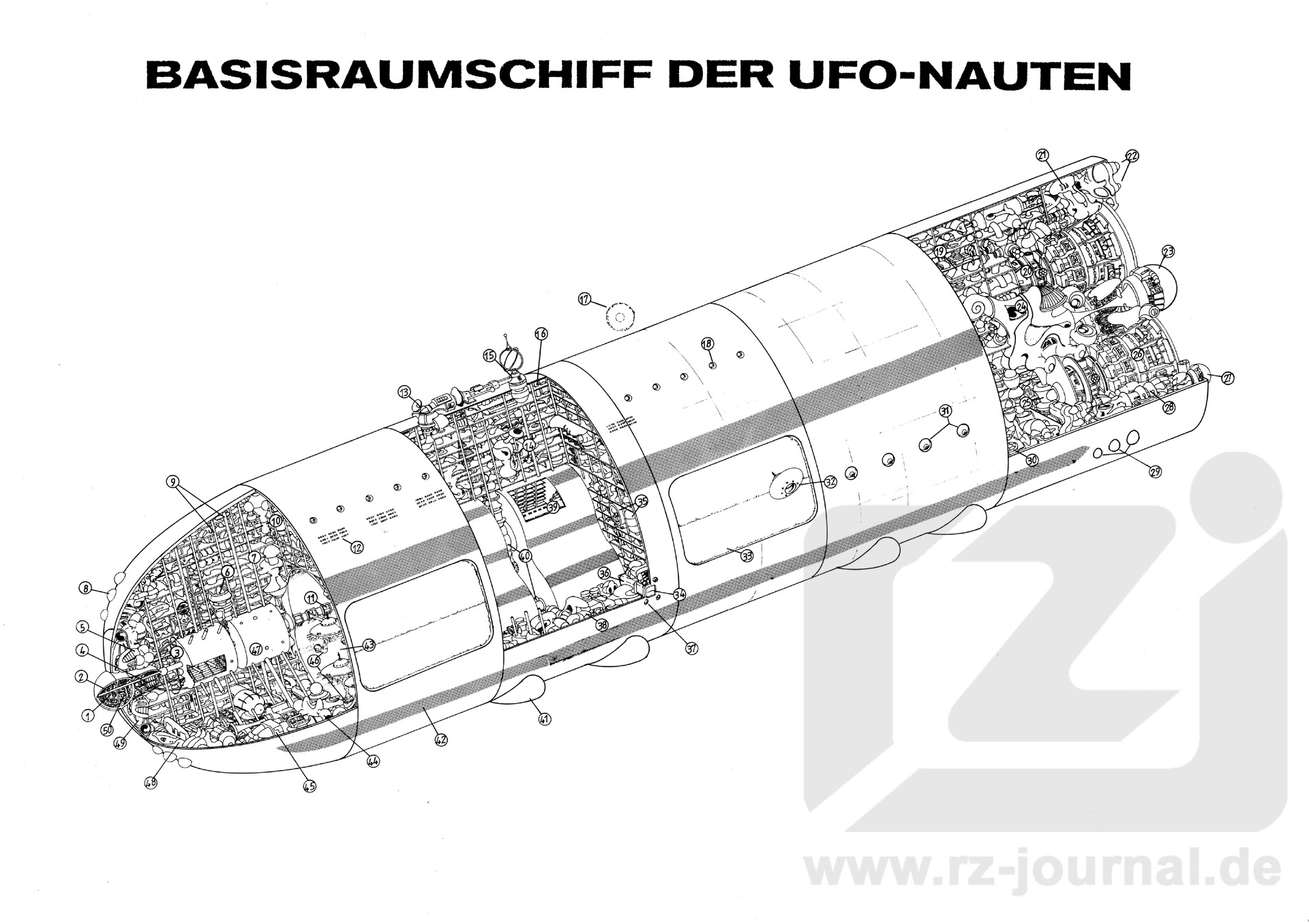 Allgemeines: Um die schier unendlichen Entfernungen zwischen den Einsatzorten überwinden zu können, benutzen die UFO-Nauten, auch Demonteure genannt, Basisschiffe zum Transport ihrer Einsatzboote. Gleichzeitig dienen diese Schiffe als Befehlszentrale ihrer Aktionen, da nur die Basiseinheiten Anweisungen der Kosmokraten - in deren Dienst die Demonteure stehen - empfangen können. Technische Daten: Länge: 1400 m Durchmesser: 350 m Beschleunigung: 850 km/sec² Besatzung: 1 UFO-Naute (Kommandant), 250 Androiden zur Schiffsführung, 960 Androiden als Beibootbesatzung |