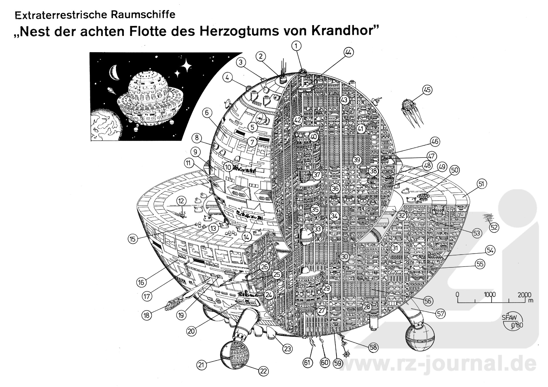 Allgemeines: Die Raumstation ist nur eine von insgesamt 23. Sie ist eine Unterkunft und zugleich die Ausbildungsstätte der 8. Flotte von Krandhor. Auf der Station leben die verschiedensten Rassen, die in der Galaxis Vayquost zu finden sind. Technische Daten: Durchmesser der „Schüssel“: 10 000 Meter Durchmesser der Kugel: 6000 Meter Höhe der gesamten Station: 8000 Meter Besatzung: 1340 Mitglieder Masse: 82 x 109 = 82 Milliarden Tonnen Beschleunigung: 50 km/sec². Schiffsbestückung: 436 Einheiten Defensiv-Bewaffnung: einfach-gestaffelter Schutzschirm (ähnlich einem Paratronschirm) |