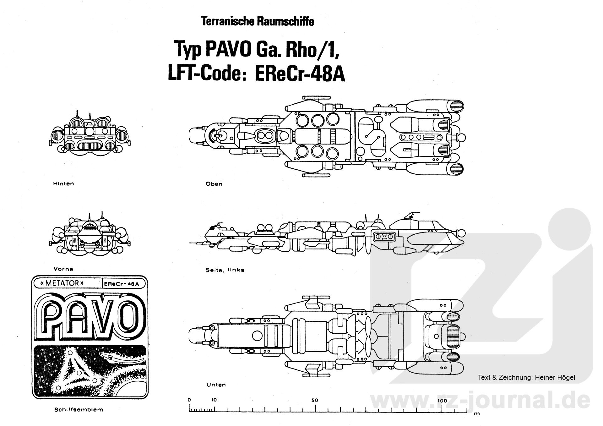 Kategorie: Forschungskreuzer und Explorer. Abmessungen: Länge 109,5 m; Breite 32 m; Höhe 18 m. Masse: 4,125-107 kg. Antrieb: 4 verschiedene Typen von Impulstriebwerken zu insgesamt 3,14 x 1013 N Schub; Meta- grav-Antrieb; leichte Antigravgeneratoren. Leistungen: Maximalbeschleunigung bei Einsatz aller Impulstriebwerke 760 km/s²-77 472 g, bei Einsatz des Hamillerpunktes 1095 km/s² - 111 621 g; max. Überlichtfaktor 1,2 x 107 - 0,38 Lichtjahre/s; Reichweite wegen Hypertropzapfern und Gravitrafspeichern nahezu unendlich. Schirmfelder: Grigoroff-Projektoren; Prall-, HÜ- und Paratronschirme; verschiedene Feldprojektoren zu Meß- und Abschirmungszwecken. Besatzung: 4 Piloten, 2 Navigatoren, 2 Funktechniker, 12 Meßtechniker und max. 8 weitere Personen (z. B, Wissenschaftler). Bemerkungen: Die Schiffe vom PAVO-Typ sind in der Explorerflotte der LFT wegen ihrer Enge berüchtigt. Buchstäblich jeder Winkel dieses Kreuzers ist vollgepackt mit Meßinstrumenten; so stellen sie praktisch fliegende Meßstationen für jede nur meßbare Größe dar. Der Entwurf stammt von NATHAN, und der erste Prototyp verließ die lunaren Werften im Jahre 421 NGZ. Er und die drei nächstgebauten Einheiten wurden als Beiboote auf einem der ersten auf Metagrav- Antrieb umgerüsteten Forschungstender der BISON-Klasse eingesetzt und leisteten hervorragende Arbeit bei der hyperphysikalischen Vermessung der Zentrumssektoren in der Milchstraße. Dabei bewährten sich auch die unterschiedlichen konventionellen Impulstriebwerke, besonders bei empfindlichen Gravitationsmessungen, die durch den Metagravantrieb verfälscht wurden. Der Typenname PAVO (lat. Rau) spielt übrigens auf die prächtigen, vielfarbigen Leuchterscheinungen an, die das Schiff bei bestimmten Meßvorgängen umgeben. |