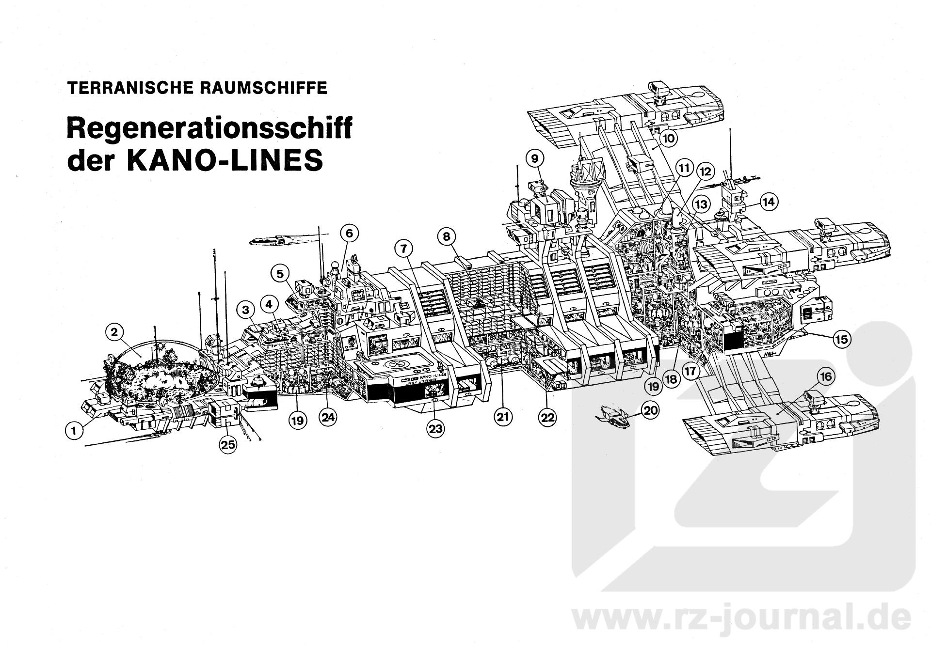 Allgemeines: Im allgemeinen Aufschwung terranischer Wirtschaft (Kosmische Hanse) nahm auch die Touristikbranche einen hohen Stellenwert ein. Hunderte kleine und große Reedereien nahmen sich dem Reisehunger terranischer Bürger an, die wenigstens einmal im Leben eine Reise zu anderen Planeten (sei es auch nur Wega) unternehmen wollten. Das hier gezeigte Urlauberschiff der KANO-LINES ist in der Lage ca. 3000 Urlauber aufzunehmen und stellt einen typischen Urlauberkreuzer dar. Neben Musik- und Spielhallen findet der Urlauber hier sämtliche Möglichkeiten zur Freizeitgestaltung. Besondere Attraktion an Bord dieses Schiffes sind sogenannte Raumrallyes, an denen jeder teilnehmen kann. Auch im großen ausgedehnten Erholungspark (mit See, kleinen Bergen und einer kleinen künstlichen Sonne) fühlt sich der Urlauber „wie zu Hause“. Die „Derek Stevenson“ fliegt meist die Route Terra-Arkon im 3-Wochen-Rhythmus. Etwa alle 2-3 Tage wird bei einem Planeten, der „touristenwürdig" ist, Station gemacht. Planetenbesuche und Führungen zu Sehenswürdigkeiten, aber auch Rundflüge mit den Verbindungsbooten durch das Planetensystem, werden geboten. Länge: 556 Meter Breite: 364 Meter Besatzung: 320 Mann Urlauberkapazität: ca. 3000 Menschen Beiboote: 32 Stück mit je 120 Mann Fassungsvermögen Bewaffnung: 6 Energiegeschütze, 6 schwere Narkosestrahler, Hü-Schirme Betreiber: KANO-LINES, Chikago Spaceport, Terra im Auftrag der LFT |