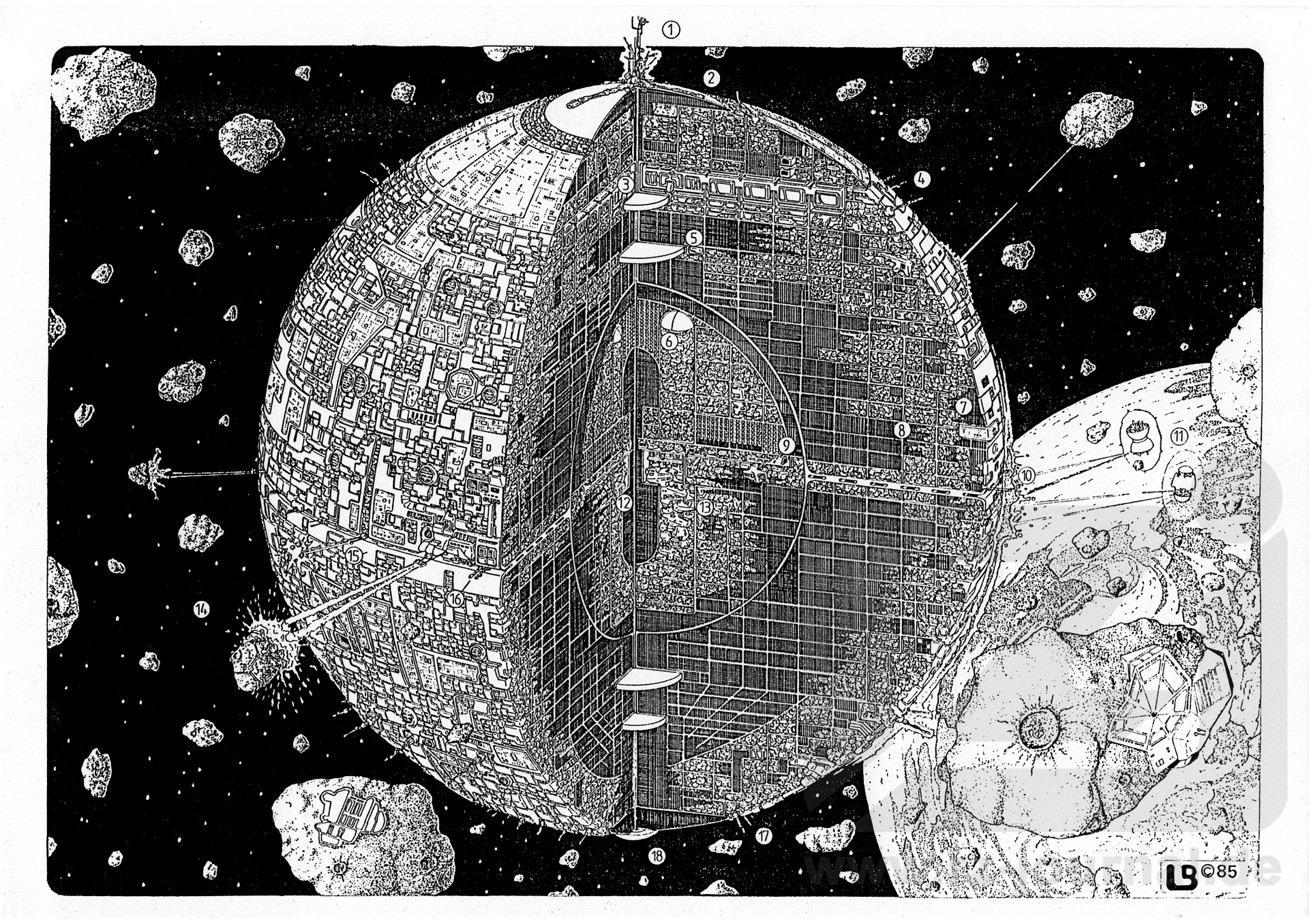 Allgemeines: Die Sporenschiffe sind Spezialraumschiffe der sogenannten Sieben Mächtigen, die im Auftrag der Kosmokraten Leben im Universum verbreiten sollten. Sie haben einen Durchmesser von 1126 km und sind mit einer Technik ausgestattet, die aus dem Bereich jenseits der Materiequellen stammt. Die Sporenschiffe waren dazu bestimmt, in den verschiedenen Regionen des Universums durch das Verbreiten von Biophoren Leben entstehen zu lassen und den Grundstock zur Bildung organischer Intelligenz zu legen, die dann durch das Wirken eines Schwarms aktiviert und gefördert werden sollte. Nach dem Ende der Ära der Mächtigen finden die Sporenschiffe als Kosmische Basare im Rahmen der Kosmischen Hanse neue Verwendung (mit Ausnahme der PAN-THAU- RA). Die Kosmischen Basare sind: Nowgorod im Kugelsternhaufen M13, Bergen in der Großen Magellanschen Wolke, Danzig außerhalb des Eugal-Systems, Lübeck in der galaktischen Eastside (14 Lj. vom Verth-System entfernt), Hamburg in der Provkon-Faust, Rostock nahe der Hundertsonnenwelt. (Diese Standorte gelten allgemein; „Versetzungen“ von Basaren sind in der Regel nur von befristeter Dauer.) Technische Daten: Deck 1-100: Kommandozentrale, Funk-, Peil- und Ortungsanlagen, Kraftwerksektionen, andere technische Einrichtungen zum Betrieb und Manövrieren des Basars, Verwaltungsräume, Büros der KH, Medozentren und Erholungsstätten, Labors und ähnliche Einrichtungen, Ersatzteillager und Treibstoffvorräte Deck 100 -1000: Warenlager und Einrichtungen für den Warenumschlag sowie die Abfertigung von Raumschiffen; Transmitter (Deck 550) Besatzung: 4000 Mann |