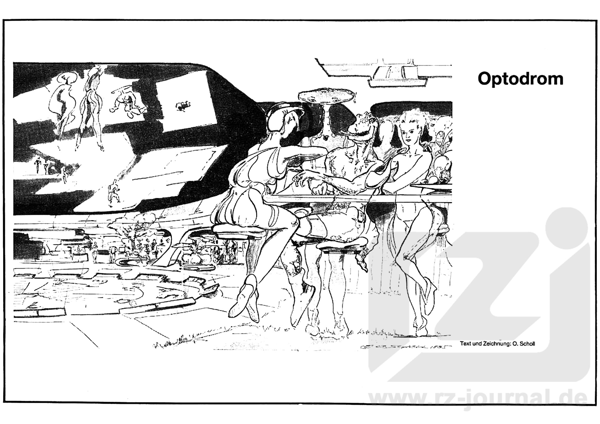 Die Einladung auf die BASIS kam für Cerria wohl etwas überraschend, aber die Jungs der Besatzung hatten es sich nicht nehmen lassen, die Dame von der Orbit-Verwaltung Terras um ihr Erscheinen zu bitten. Eigentlich war ja alles wie auf der Erde, die in verschiedenen Stilen untergliederte Bar mit ihren Sitzecken und menschlichem (!) Personal bildete einen Ring um die Tanzkuppel, das Optodrom. Normalerweise war die Kuppel Projektionsfläche für die Light- Show, und in den Tanzpausen wurden Bilder der Milchstraße oder einsame Sternennebel an die Wand projiziert, je nach (über mechanotelepathische Gefühlssensoren ermittelter) Stimmung der Gäste. Doch hier war der Ausblick auf den Weltraum echt (zusätzlich zu den Projektionen). Die Herren Navigatoren würden wohl noch kommen, aber der Topsider und der Blue (anscheinend der Schiffschefkoch) waren ja auch ganz nett. Leider steigerte sich die Stimme des Blues bei der gerade ablaufenden Diskussion über die Qualität des Bordessens in immer schnellere und sich überschlagende Zwitschertöne. Da hatte es Tyria mit ihrem Translatorhut schon leichter. Gekleidet in den allerletzten Schrei der terranischen Abendmode (hauchdünne, in allen Regenbogenfarben schimmernde Tronar-Seide, die in Steifen die Hüfte umschmiegte, ließ ihre hellgrün getönte Haut durchschimmern), mit einem Tanzantigrav um die Schultern, zog es sie nun auf die Tanzfläche (die aus einem Low-G-Bereich und mehreren zueinander geneigten Prallfeldern mit separater Gravitationseinrichtung bestand) um dort graziös zu den Rhythmen der Musik durch die Luft zu gleiten - ein uralter Traum des Menschen, der im Optodrom und seinen Tanzebenen Erfüllung fand. |