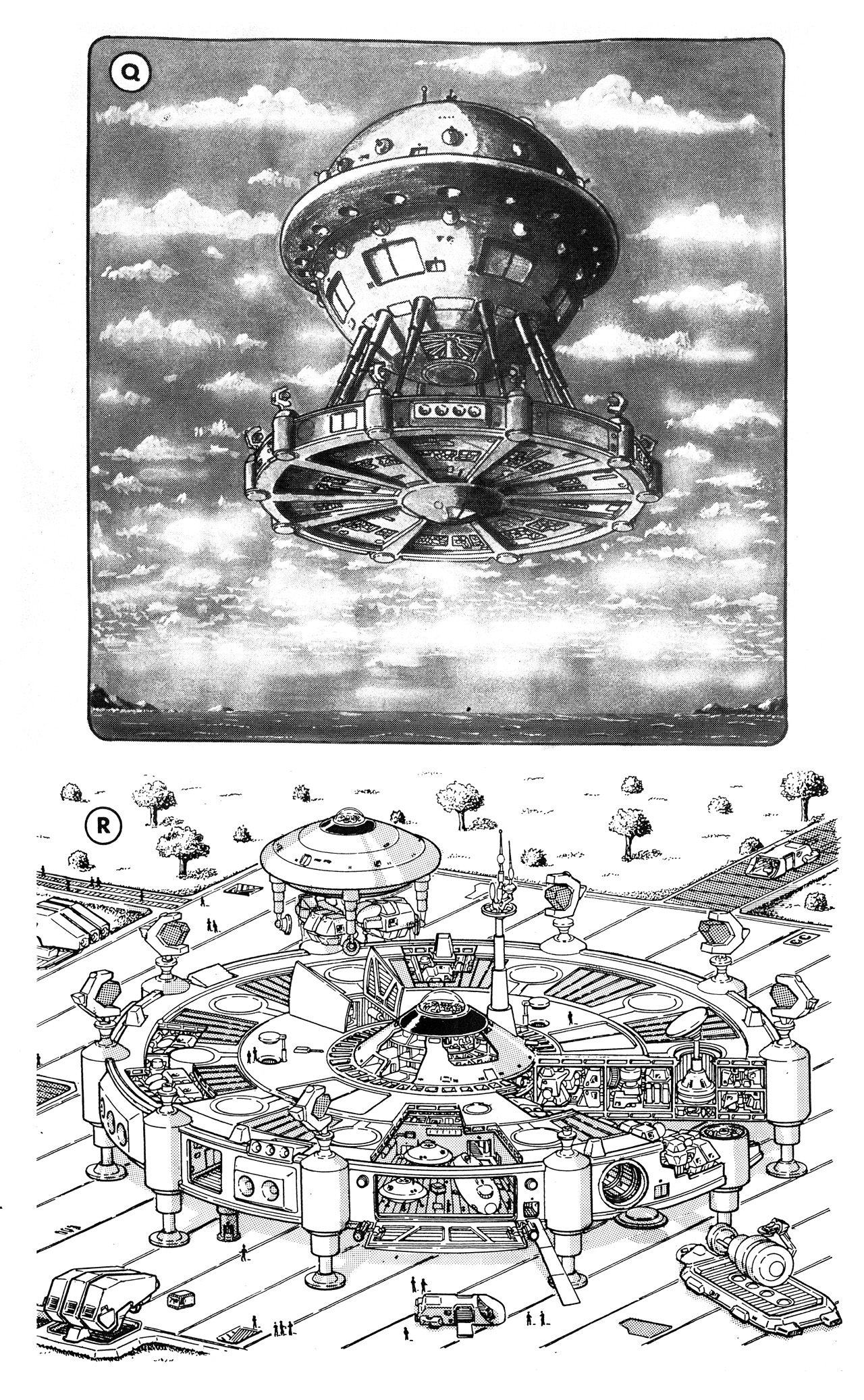 Q. „LITTLE GIANT“ (Prototyp eines Beiboot-Tenders der PYGMÄEN-Klasse im Januar 3459) Abmessungen: Plattformdurchmesser 125 m, Antrieb: 10 PPB- (PULSED-PROTON-BEAM) Triebwerke, 12 leichte und mittlere Impulstriebwerke für zusätzliche Schub-und Steuerzwecke; 3 Waringer-Konverter mit 460000 Lichtjahren Reichweite Leistung: 490 km/sec² = 49949 g (leer), 180 km/sec2 = 18348 g Bewaffnung: Besatzung: |