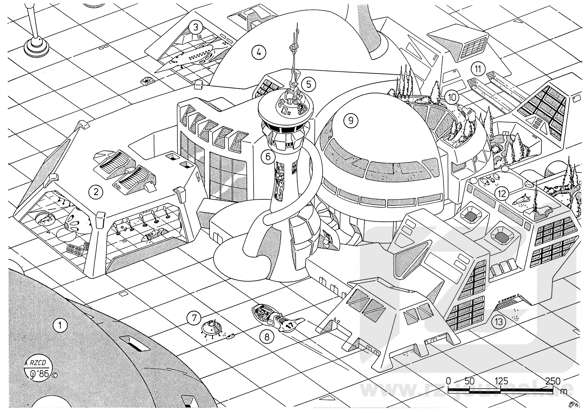 Das Gelände des Frankfurter Flughafens würde einem Terraner des Jahres 446 NGZ wohl nur ein müdes Lächeln abringen, denn Maßstäbe und Größenvorstellungen haben sich in den letzten tausend Jahren erheblich verändert, sind ins Gigantische gewachsen. Mit Hilfe modernster Transportmittel, vom Gleiter, über Schnellbahnen, bis hin zum Überlicht- schnellen Raumschiff, hat der Erdenbürger oder Ex- traterrestrier, wo immer er auch herkommen möge, die Möglichkeit große bis größte Strecken in rentabler Zeit zurückzulegen. Die Größe von Gebäuden und Einrichtungen der Öffentlichkeit oder deren Entfernung zueinander ist nicht mehr der maßgebende Faktor. Im Gegenteil, man liebt Komfort und Service, sowie Bequemlichkeit und Stil. Menschenmassen, die sich schwitzend und koffer- schleppend ihren Weg zum angesagten Gateway bahnen, sind hier nicht mehr bekannt, Warteschlangen durch Enrichtung und Organisation unmöglich gemacht. Die Lebensbedingungen fast sämtlicher galaktischer Völker sind für das Wohlbefinden ebenso vorhanden, wie für Otto Normalterraner, der seinen Urlaub auf irgendeinem Siedlerplaneten verbringen möchte, und der nun auf sein Schiff wartet. Selbstverständlich ist der hier gezeigte Teil des Raumhafenareals nur ein winziger Ausschnitt aus dem Gebäudegiganten TERRANIA-SPACEPORT. Allein Sektor Xll-B hat eine Grundfläche von 1,14 Quadratkilometern, d. h. 1.140.000 Quadratmetern, von den vielen Etagen ganz zu schweigen... |