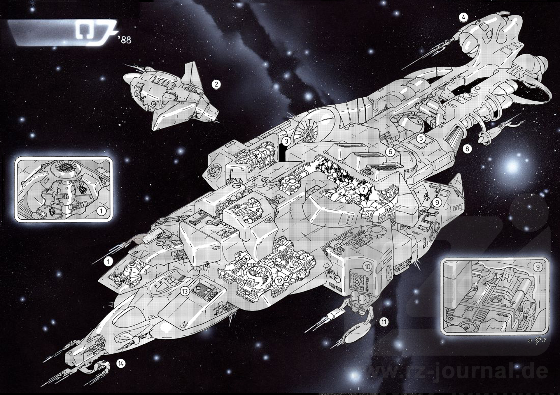 Technische Daten: Länge: 280 Meter (ohne Antennen) Breite: 150 Meter Höhe: 80 Meter Defensiv-Bewaffnung: 1 HÜ-Schirm Offensiv-Bewaffnung: leistungsstarke Desintegratoren, Thermostrahler, 50 nukleare Transitions-Torpe- dos Triebwerksleistung: Transitionstriebwerk ÜL-Faktor 5 Millionen, Sprungweite max. 10000 Lichtjahre |
