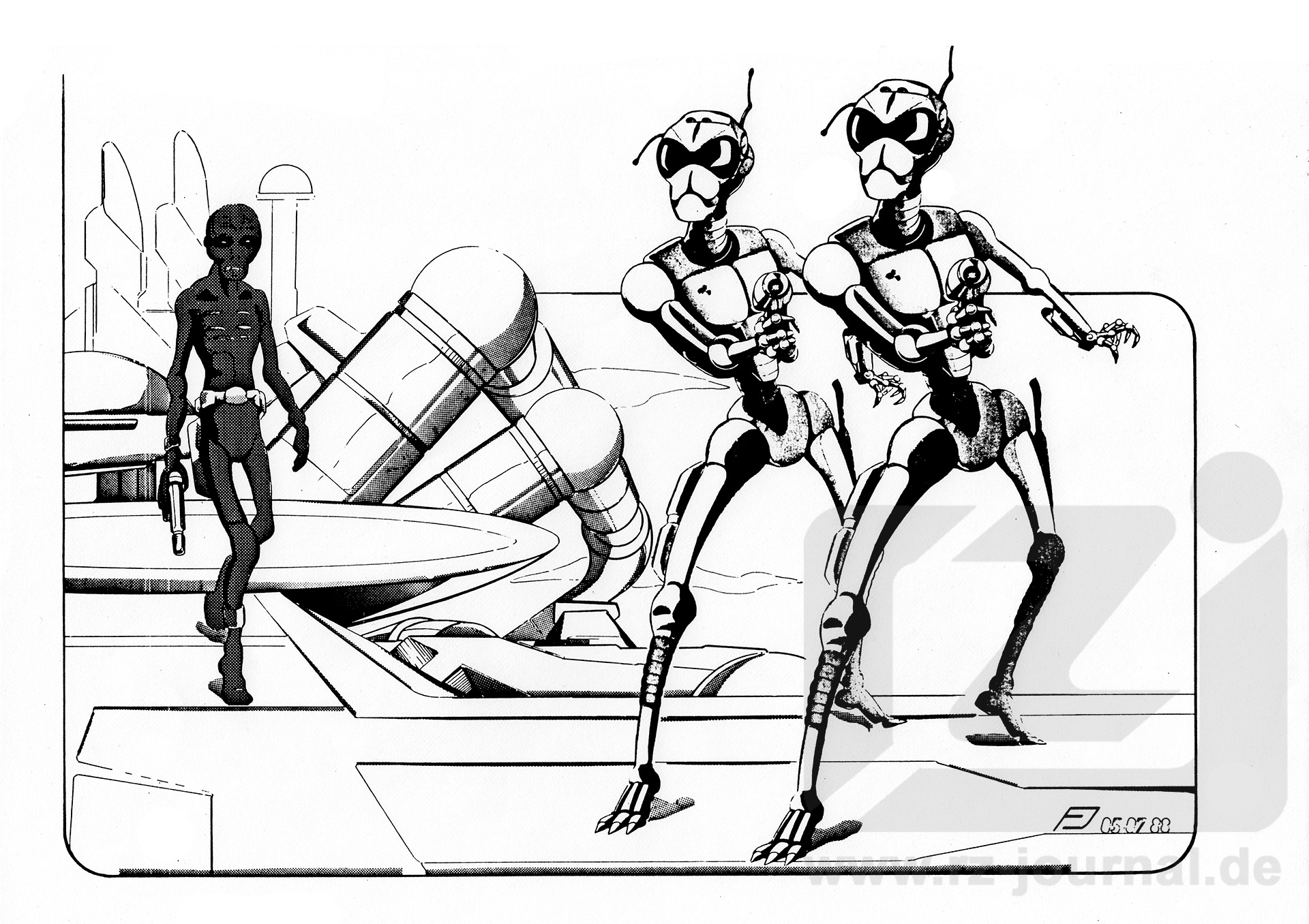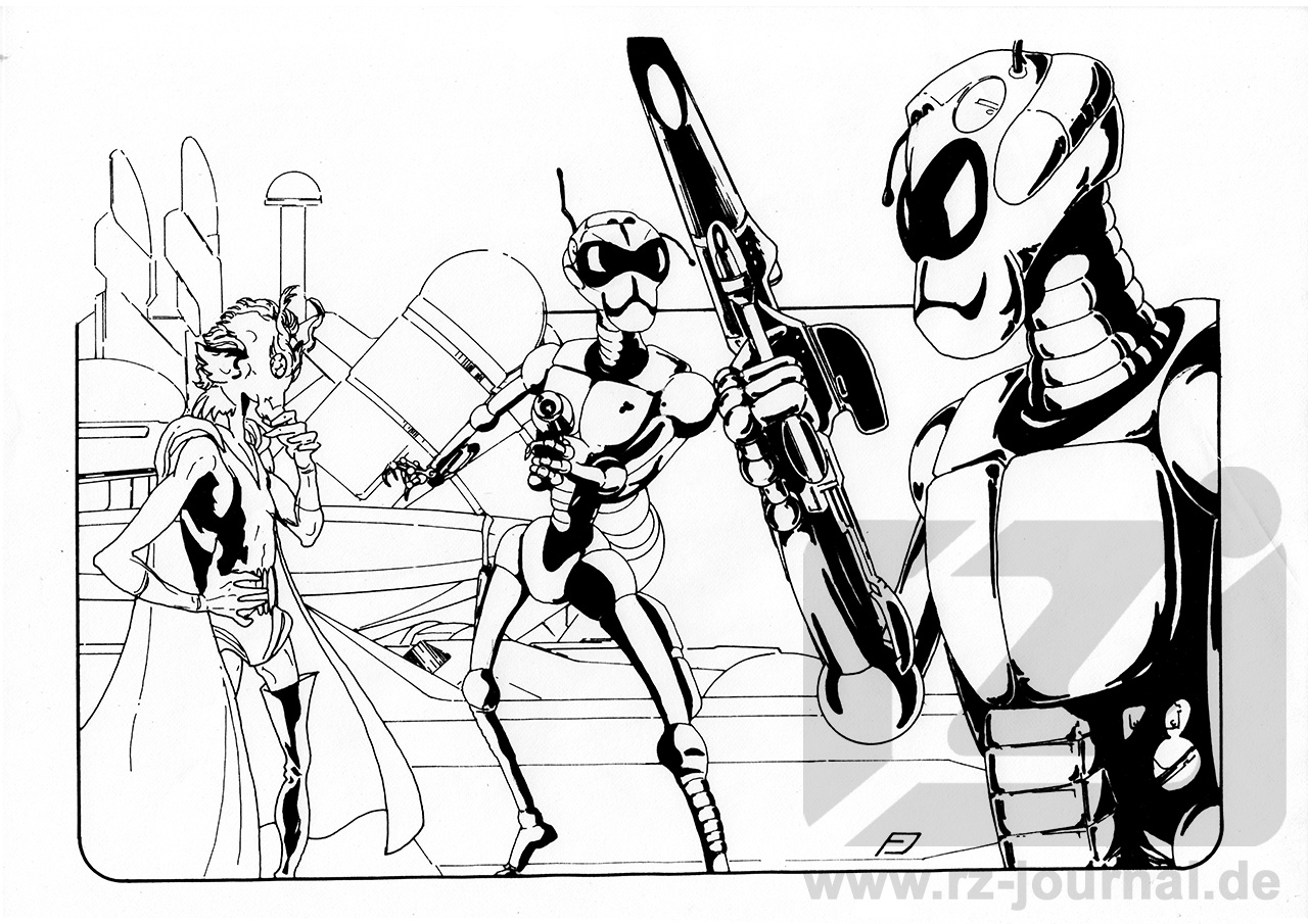 www.rz-journal.de - © by Frank Jaeckel und Perry Rhodan - published in PR 1420 - Abdruck mit freundlicher Genehmigung der Pabel-Moewig Verlag KG, Rastatt Die Verwendung der Zeichnungen auf einer eigenen Homepage ist nur mit Genehmigung des Zeichners, des Verlages und unter Benennung der Bezugsquelle und des Copyrightinhabers gestattet. Verlinkung sind nur auf die Originalquelle zulässig. |