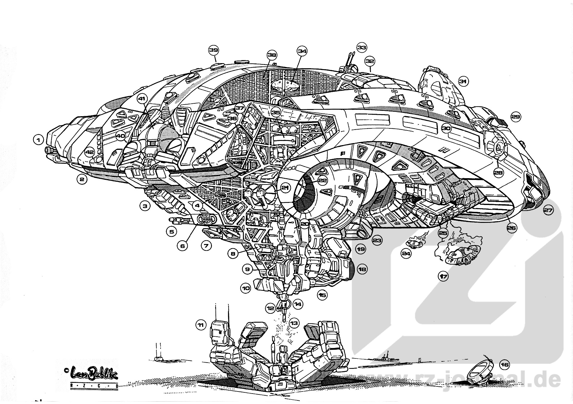 Allgemeines: Die SHARN-Y-YAAK ist eine Großkampfschiff- "Muschelschiff" genannt - aus NGC 5236 (M 83, Entfernung 13 Mio. Lj). Es gibt die Muschelschiffe in verschiedenen Größenklassen von 500m bis 1500m Durchmesser. Die SHARN-Y-YAAK hat einen Durchmesser von 1000m. Da die Muschelschiffe des Bewahrers durchweg von genormten Wesen wie Per-E-Kit bemannt sind, ist die Deckshöhe aller Nutzräume eher gering gehalten. Das trifft vor allem auf die Mannschaftsquartiere zu. Es gibt aber auch Passagierräume für besondere Gäste, die etwas komfortabler ausgestattet sind. Die Kommandozentrale ist großzügig gestaltet. Sie ist zweigeteilt. Die linke Hälfte bildet die eigentliche Hauptzentrale, die rechte Hälfte ist die Co-Zentrale. Dazwischen befindet sich die Ortungs- und Feuerleitzentrale, diese sind ebenfalls doppelt vorhanden. Am Heck gibt es ein verkleinertes Abbild der Kommandoeinheit mit der Orter-Feuerleitzentrale Nummer 2, ebenfalls wieder zweifach ausgelegt. Die Heck-Kommandozentrale hat jedoch die Funktion einer Beiboot-Hangar-Leitstelle. Die Besatzung setzt sich in der Regel aus 1000 "Mann" zusammen. Dazu gibt es Unterkünfte für 5000 Soldaten. Die SHRAN-Y-YAAK ist mit insgesamt 4000 Wesen aus M83, die in ihrer Heimat Rebellen sind, besetzt. Technische Daten: Rumpfabmessungen: Durchmesser 1000m Antrieb: Metagrav ähnliche Triebwerke, Gravojet ähnliche Antrieb, Antigrav-Triebwerke Beschleunigung: unbekannt Überlicht-Faktor: unbekannt Energie: Energiespeicher, Notkraftwerke Bewaffnung: Verschiedene Systeme (in 54 Türmen), Impulsgeschütze Defensiv-Bewaffnung: Verschiedene Schutzschirme, Prallschirm Beiboote: Diverse 80m Beiboote, 50m Beiboote, Ladungsboote und Gleiter Besatzung: 4000 Wesen |