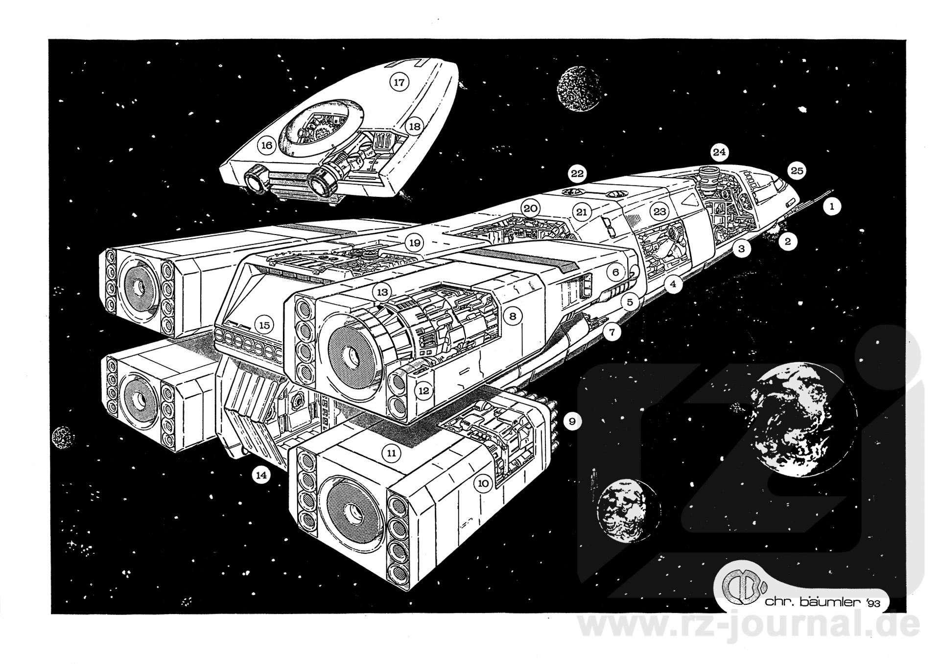Technische Daten: Länge (ohne Bugantenne): 142 Meter Breite: 54 Meter Höhe (ohne Zusatzmetagravmodul): 34 Meter Besatzung: Minimum 10 Personen ÜLFaktor (ohne Zusatzmetagrav): 40 Millionen (mit Zusatzmetagrav: 65 Millionen) Beschleunigung: maximal 975 km/s² |