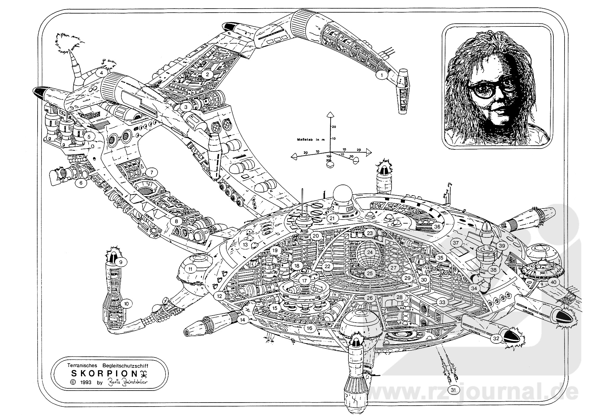 ALLGEMEINES: Im Zug des Wiederaufbaus der Handelswege in der Post-Monos-Ara entstand in der zweiten Hälfte des 12. Jahrhunderts NGZ erneut das Bedürfnis, die einzelnen Handeiskarawanen mit Begleitschutz auszustatten. An vielen Orten der Milchstraße wurden dafür neue Schiffstypen entwickelt und gebaut, so auch im Solsystem. Der Prototyp eines neuen Typs. der auf den lunaren Werften entstand, ist die SKORPION« die speziell auf die Bedürfnisse der Kosmischen Hanse. Sektor: Handel, entwickelt wurde. Es handelt sich um ein reines Kampfschiff mit moderner Technologie. Sie ging im Jahr 1190 N02 in den Dienst. Ihr folgten in den nächsten Jahren 19 Schiffe des gleichen Typs. |