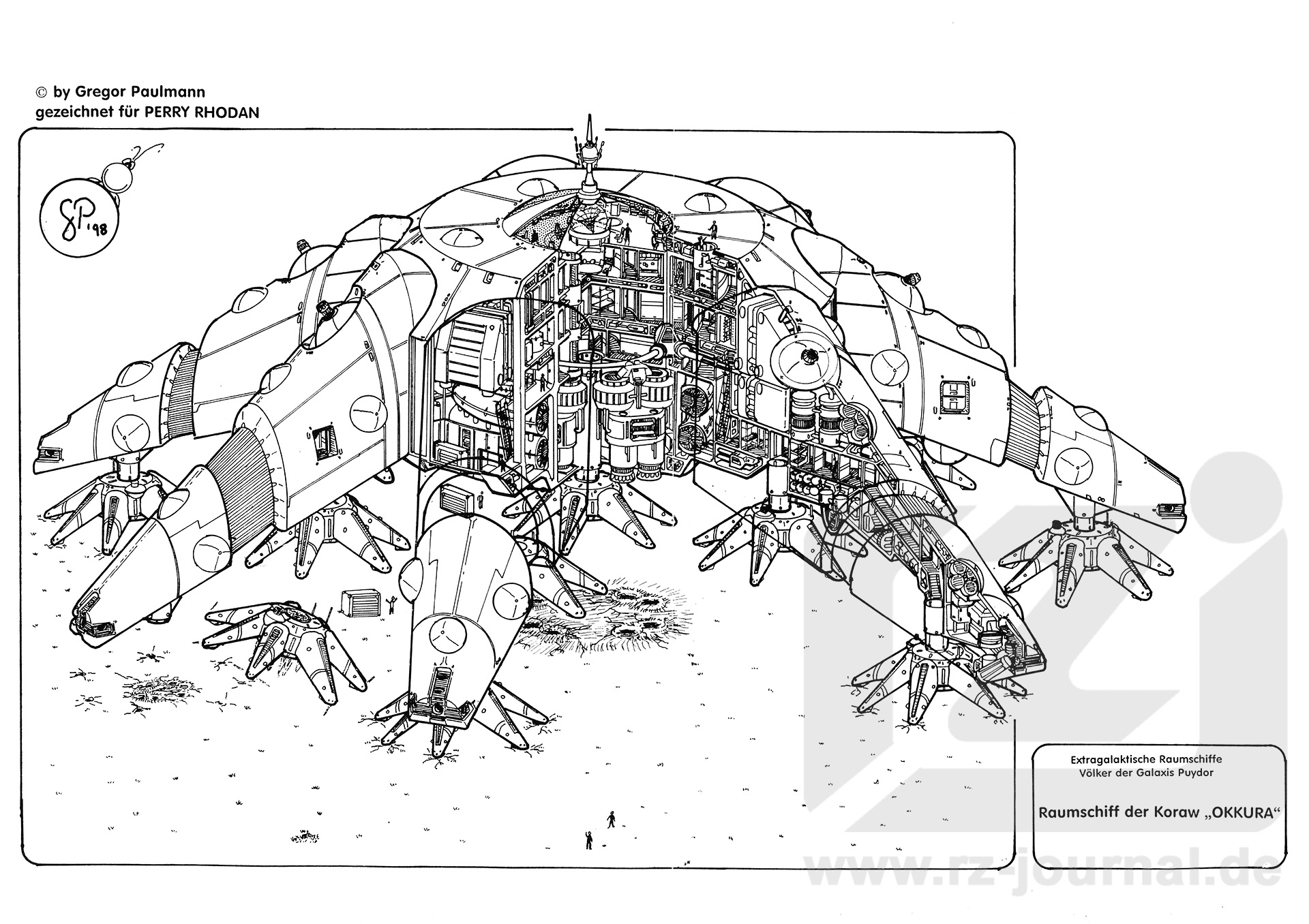 www.rz-journal.de - © by Gregor Paulmann und Perry Rhodan - published in PR 1943 - Abdruck mit freundlicher Genehmigung der Pabel-Moewig Verlag KG, Rastatt Die Verwendung der Zeichnungen auf einer eigenen Homepage ist nur mit Genehmigung des Zeichners, des Verlages und unter Benennung der Bezugsquelle und des Copyrightinhabers gestattet. Verlinkung sind nur auf die Originalquelle zulässig. |