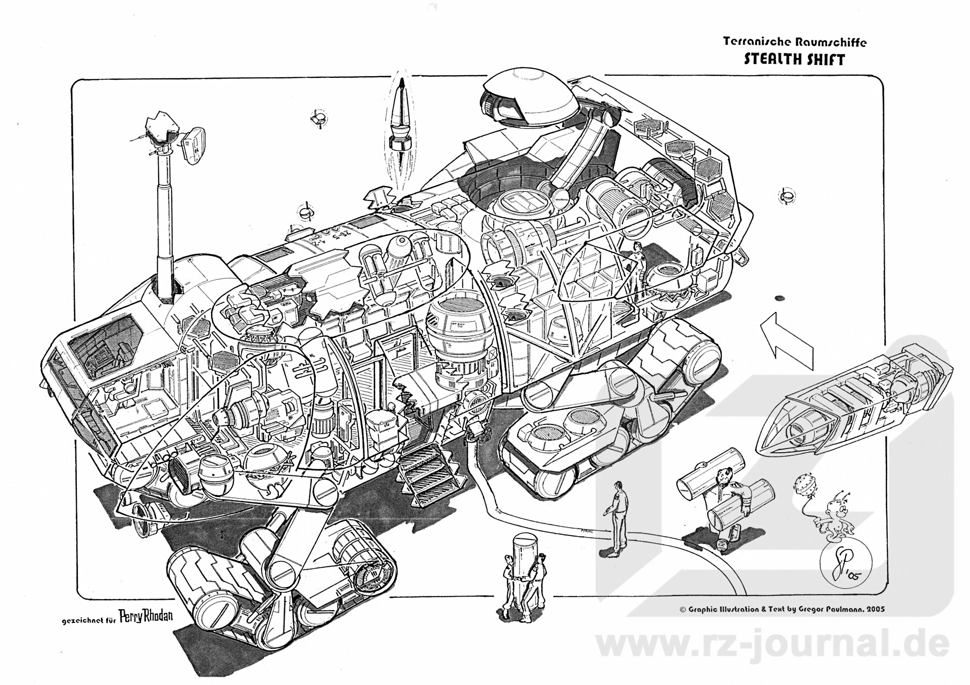 www.rz-journal.de - © by Gregor Paulmann und Perry Rhodan - published in PR 2319 - Abdruck mit freundlicher Genehmigung der Pabel-Moewig Verlag KG, Rastatt Die Verwendung der Zeichnungen auf einer eigenen Homepage ist nur mit Genehmigung des Zeichners, des Verlages und unter Benennung der Bezugsquelle und des Copyrightinhabers gestattet. Verlinkung sind nur auf die Originalquelle zulässig. |