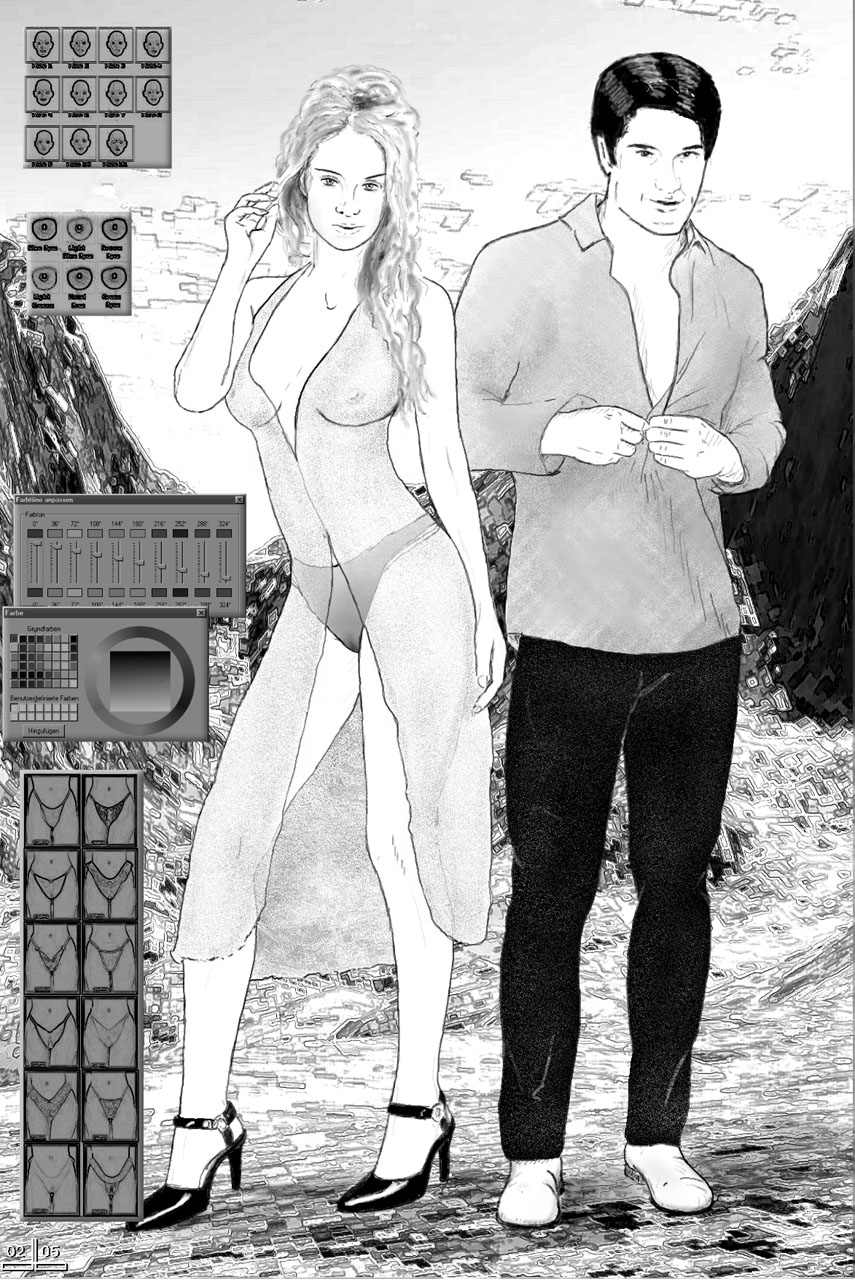Es gibt verschiedene größere und kleinere Anbieter. Die bekanntesten sind Pabo-T und Troll Incorporation. Auffällig ist, dass die in Robotfragen renommierte Whistler Company keine Modelle anbietet und auch nie angeboten hat. ZurAuswahl stehen sowohl Modelle »von der Stange« als auch Ausführungen, die man sich in einem Baukastensystem individuell zusammenstellen kann. Die Abbildung zeigt eine kleineAuswahl der Parameter (Gesichtsform, Augenfarbe, Hautfarbe, Bekleidung] dieses Baukastens, An Redoxvarianten mit nichtmenschlicher Gestalt besteht im terranischen Markt kaum eine nennenswerte Nachfrage. Einzig das Modell Kartanin schreibt einigermaßen attraktive Verkaufszahlen. Das Nachbilden von Minderjährigen sowie von lebenden oder toten Personen, die nicht ausdrücklich ihre Einwilligung gegeben haben, ist strengstens verboten. Trotzdem sind auf dem schwarzen oder roten Markt zuhauf illegale Modelle mit den Bezeichnungen »Marilyn«, »Mirona« oder »Roi« zu finden.