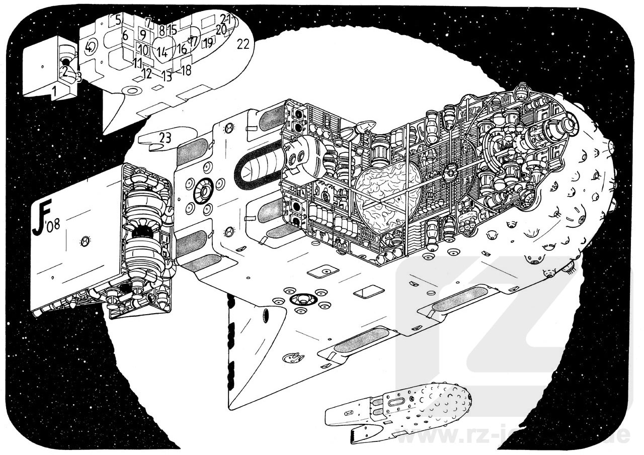 www.rz-journal.de - © by Johannes Fischer und Perry Rhodan - published in PR 2447 - Abdruck mit freundlicher Genehmigung der Pabel-Moewig Verlag KG, Rastatt Die Verwendung der Zeichnungen auf einer eigenen Homepage ist nur mit Genehmigung des Zeichners, des Verlages und unter Benennung der Bezugsquelle und des Copyrightinhabers gestattet. Verlinkung sind nur auf die Originalquelle zulässig. |