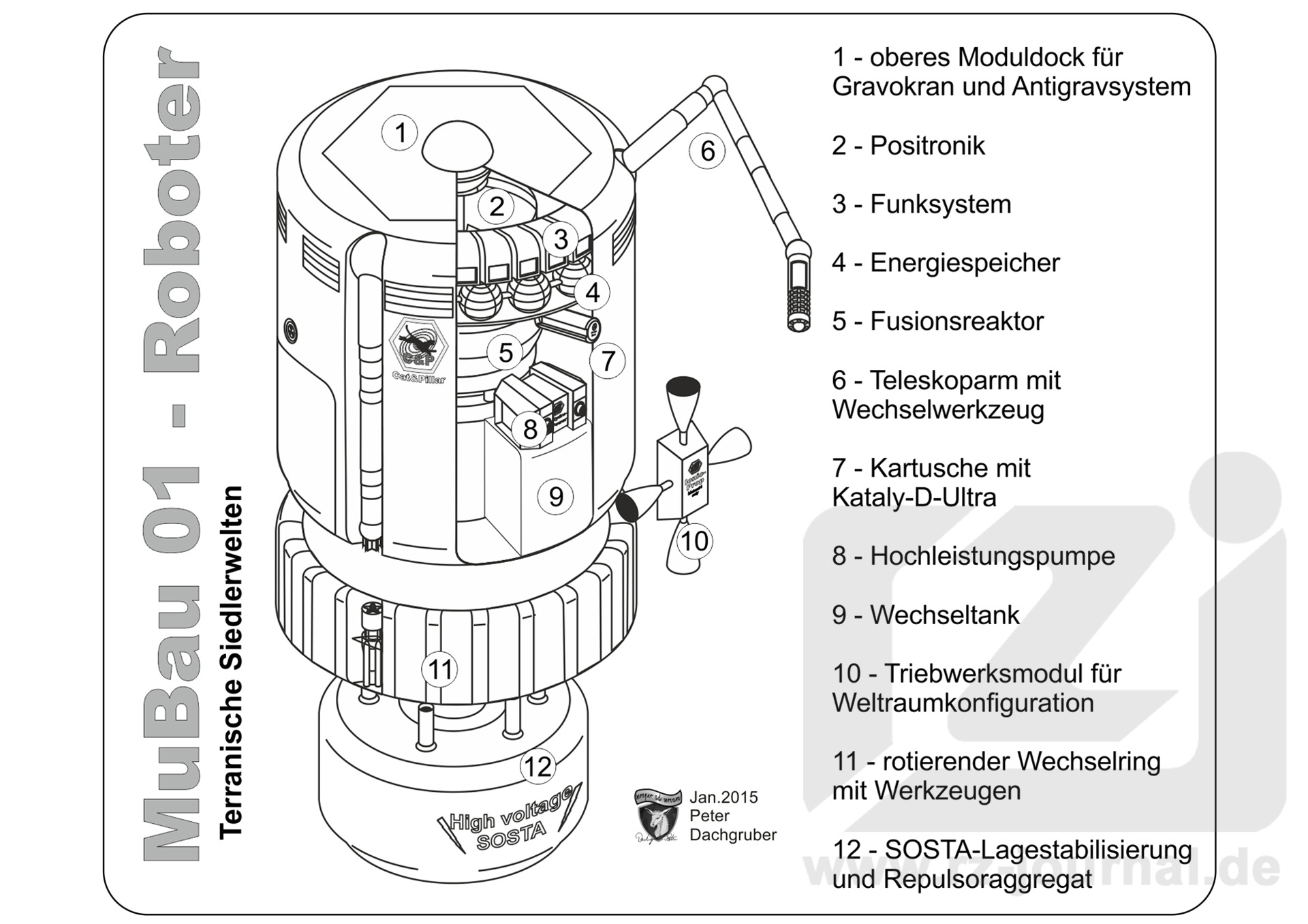www.rz-journal.de - © by Peter Dachgruber und Perry Rhodan - published in PR 2788 - Abdruck mit freundlicher Genehmigung der Pabel-Moewig Verlag KG, Rastatt Die Verwendung der Zeichnungen auf einer eigenen Homepage ist nur mit Genehmigung des Zeichners, des Verlages und unter Benennung der Bezugsquelle und des Copyrightinhabers gestattet. Verlinkung sind nur auf die Originalquelle zulässig. |