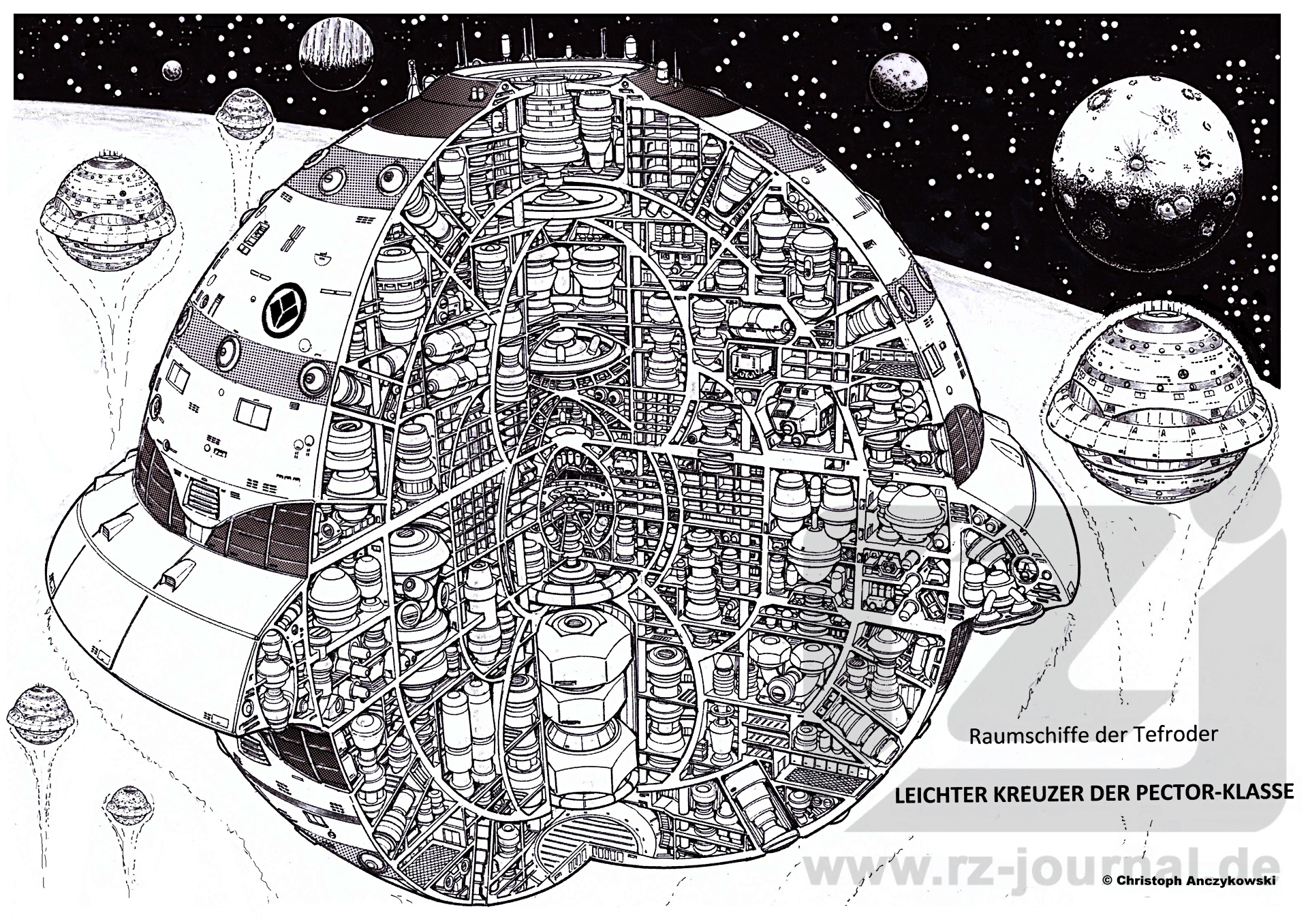 www.rz-journal.de - © by Christoph Anczykowski und Perry Rhodan - published in PR 2927 - Abdruck mit freundlicher Genehmigung der Pabel-Moewig Verlag KG, Rastatt Die Verwendung der Zeichnungen auf einer eigenen Homepage ist nur mit Genehmigung des Zeichners, des Verlages und unter Benennung der Bezugsquelle und des Copyrightinhabers gestattet. Verlinkung sind nur auf die Originalquelle zulässig. |