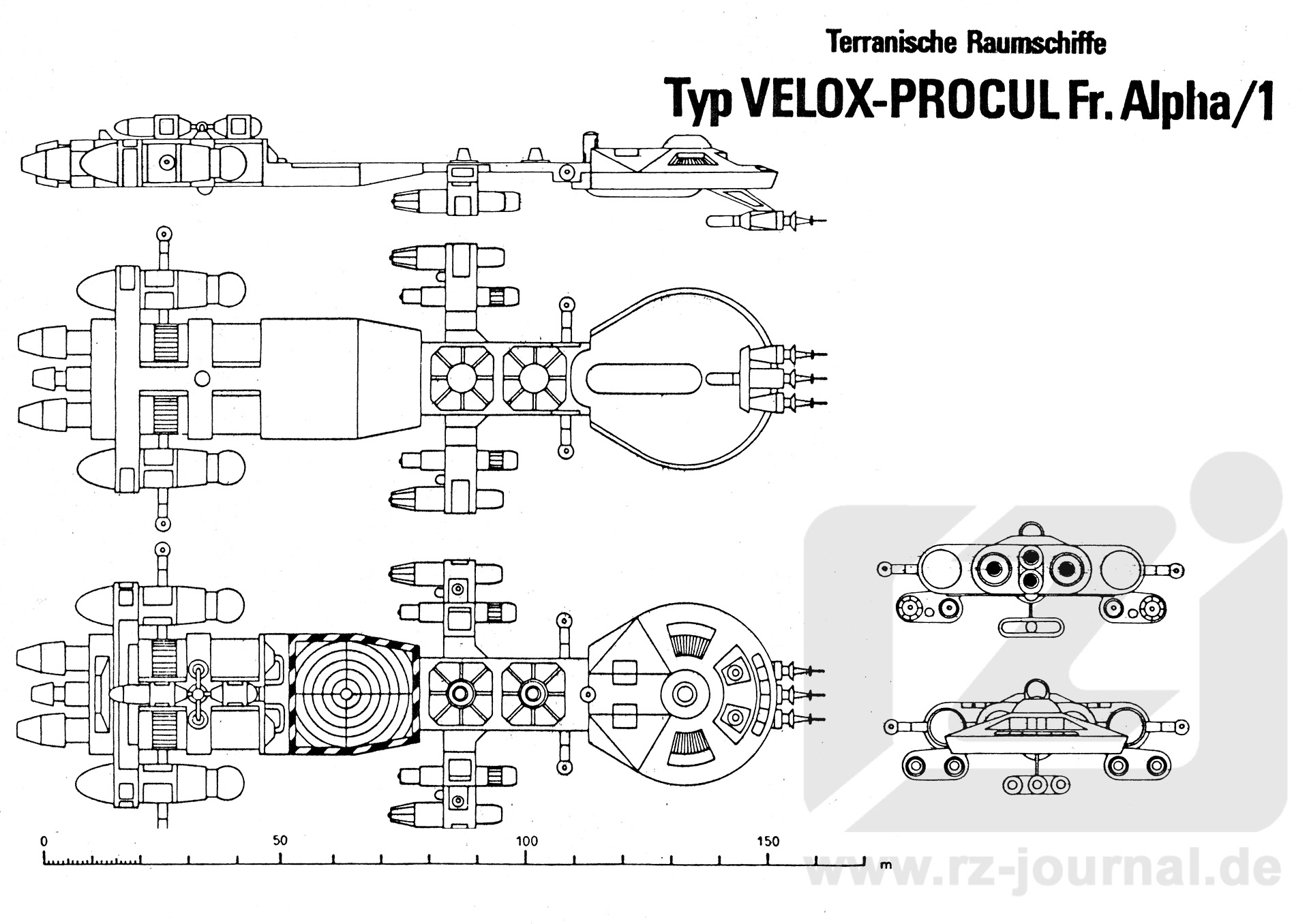 Bemerkungen: Die Firma IFU (Interplanetary Freighters United) genießt galaxisweit den Ruf, immer für eine überraschende Neukonstruktion gut zu sein. Nach dem durchschlagenden Erfolg des Low-Cost-Frachters PACKHORSE I sah sich das Unternehmen vor die Frage gestellt, wohin die erwirtschafteten Gewinne abfließen sollten. Die von mehreren autarken Siedlungswelten getragene Firma war ursprünglich nur mit geringen Profiterwartungen auf den galaktischen Markt gegangen. Man entschloß sich schließlich, einen überlichtschnellen Kleinfrachter zu entwickeln, der in der Lage sein sollte, jedes beliebige Ziel in der Milchstraße etwa zehnmal schneller zu erreichen als z. B. ein Schiff der Springer. Schon bald stellte sich heraus, daß die Lösung der teilweise erheblichen technischen Probleme größere als die anfänglich bereitstehenden Mittel verschlingen würde. Die riskante Entscheidung, die Entwicklungsarbeiten trotzdem fortzuführen, sollte sich bezahlt machen. Schon vor dem Erstflug lagen über hundert Bestellungen für den Typ VELOX PRO- CUL vor. Nach anfänglichem Zögern orderte dann auch das Solare Imperium eine größere Stückzahl der Frachter für Blitztransporte in entlegene Gebiete der Milchstraße. |