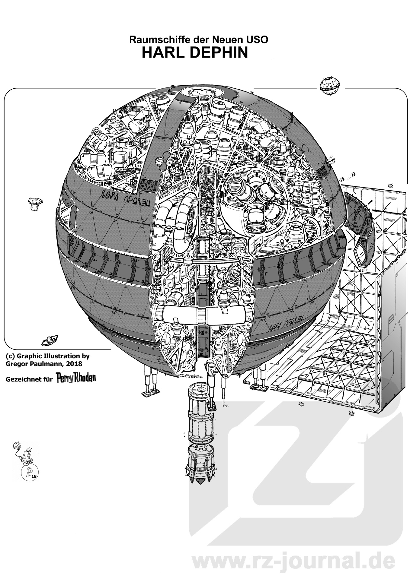 www.rz-journal.de - © by Gregor Paulmann und Perry Rhodan - published in PR 2979 - Abdruck mit freundlicher Genehmigung der Pabel-Moewig Verlag KG, Rastatt Die Verwendung der Zeichnungen auf einer eigenen Homepage ist nur mit Genehmigung des Zeichners, des Verlages und unter Benennung der Bezugsquelle und des Copyrightinhabers gestattet. Verlinkung sind nur auf die Originalquelle zulässig. |