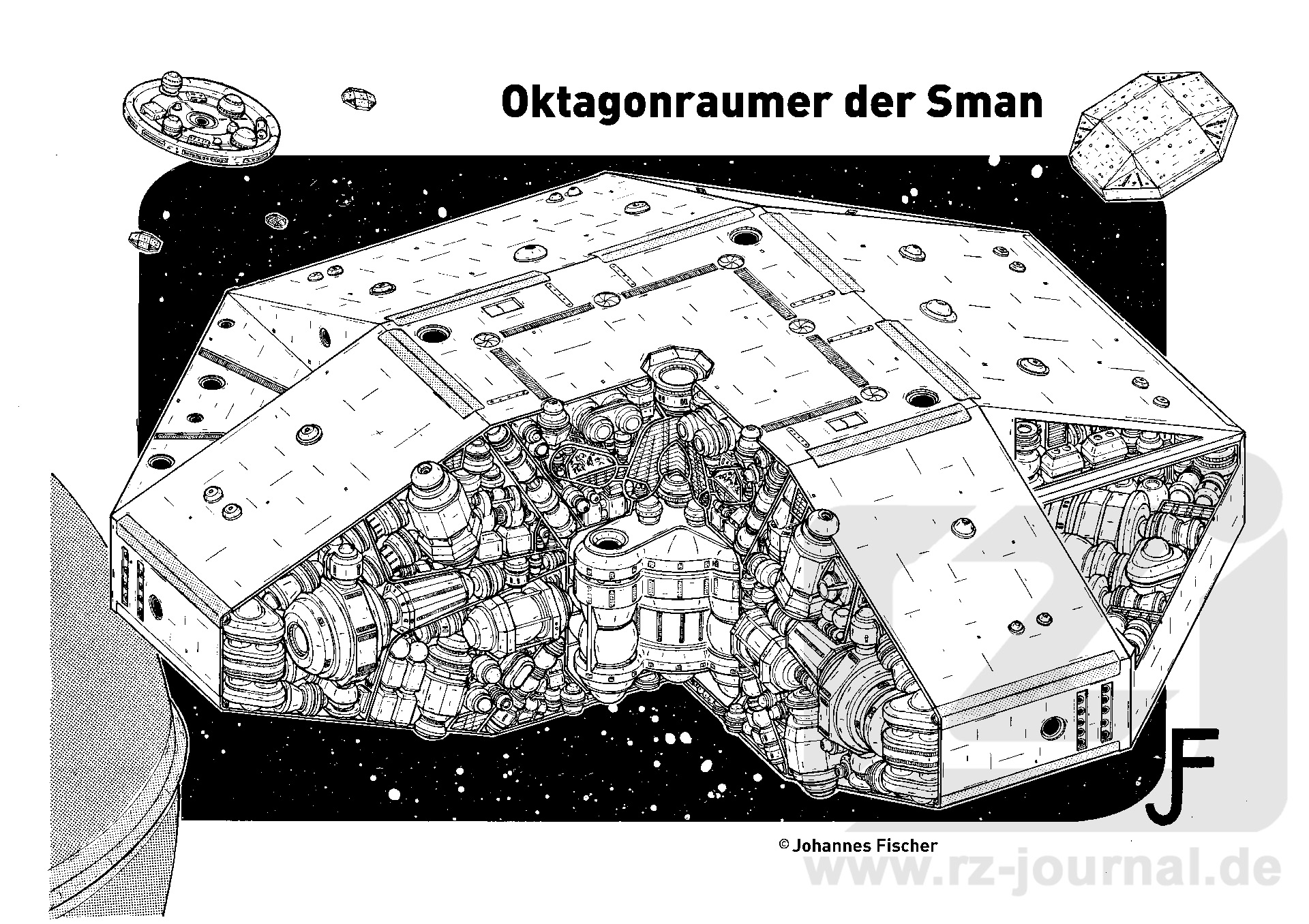 www.rz-journal.de - © by Johannes Fischer und Perry Rhodan - published in PR 3255 - Abdruck mit freundlicher Genehmigung der Pabel-Moewig Verlag KG, Rastatt Die Verwendung der Zeichnungen auf einer eigenen Homepage ist nur mit Genehmigung des Zeichners, des Verlages und unter Benennung der Bezugsquelle und des Copyrightinhabers gestattet. Verlinkung sind nur auf die Originalquelle zulässig. |