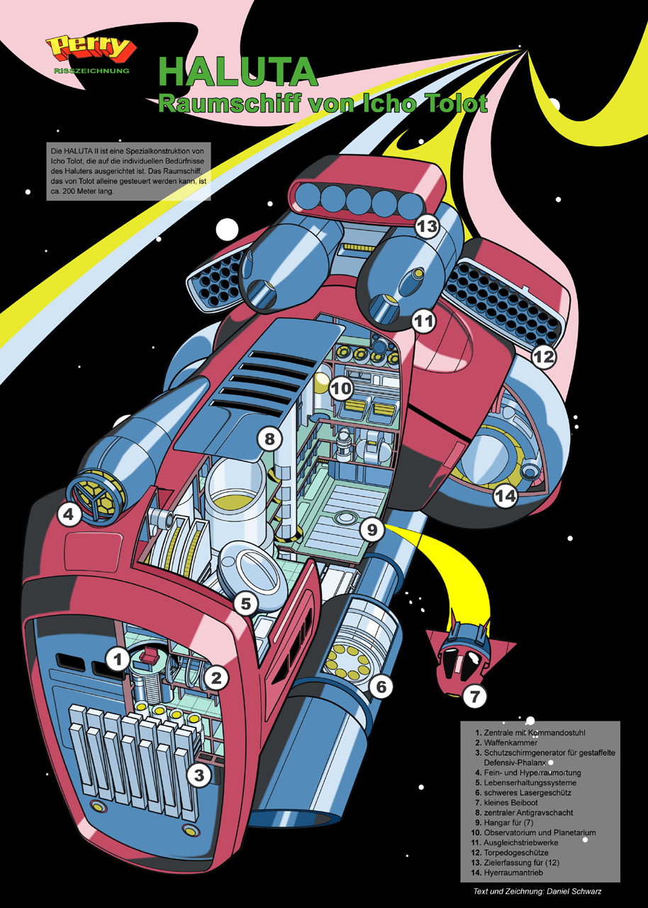www.rz-journal.de - © by Daniel Schwarz und "Perry - Unser Mann im All" - published by Alligator Farm Die Verwendung der Zeichnungen auf einer eigenen Homepage ist nur mit Genehmigung des Zeichners, des Verlages und unter Benennung der Bezugsquelle und des Copyrightinhabers gestattet. Verlinkung sind nur auf die Originalquelle zulässig. |