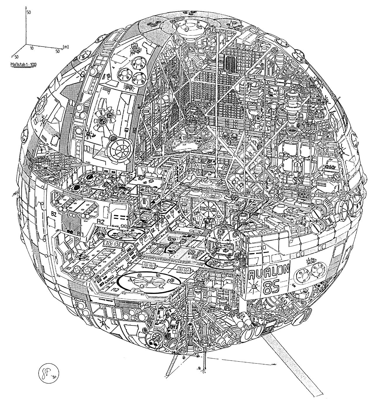 Der innovative Raumschiffbau gehörte seit den Tagen des Solaren Imperiums zu den Domänen terranischer Ingenieurskunst, doch in den Jahrzehnten nach der Monos-Herrschaft erlebten vor allem die Arkoniden ein Wirtschaftswunder. Während auf Arkon die Schiffe der ATLANTIS-Klasse entstanden, bewegte sich die terranische Industrie im Schneckentempo. In den letzten sechzig Jahren entwickelte sich - aufgrund der politischen Veränderungen - endlich auch der terranische Raumschiffbau rasant weiter: So entstanden auf Luna ab dem Jahr 1228 neue Großraumer. die sich organisch an den Standard der alten ODIN-Klasse anschlossen, diesen aber in vielen Punkten übertrafen. Größtenteils wurden diese Flottenneubauten in die LFT-Flotte integriert, einige wenige Einheiten gingen jedoch an befreundete Systeme. Vom September 1280 bis zum Januar 1283 entstand im Werftsektor Romeo XV die AVALON; verantwortlich war die »Lunaterra Spacecraft Incorp. Luna Division« mit Sitz in Wollongon, Australien. Der Schwere Kreuzer mit 500 Metern Durchmesser wurde in MERZ-Bauweise erstellt; der Verwendungskatalog verlangte einen »autarken, ohne direkte logistische Unterstützung geführten Ferneinsatz«, darüber hinaus Trägereigenschaften für Transportgüter. Jäger und anderes. Im Mai 1283 wurde die AVALON mit ihrer Grundausstattung an die Planetare Administration von Raglund verkauft. Die Regierung Raglunds bestand zu dieser Zeit aus Amis, Gatasern. Cheboparnern und Unithern unter Leitung des Unithers Kelassan und mußte sich dazu verpflichten. das Schiff nie gegen die Liga Freier Terraner einzusetzen. Die AVALON wurde mit verschiedenen Ergänzungen bestückt und gilt seitdem als Flaggschiff des Forums Raglund. untersteht aber weiterhin der Planetaren Administration.