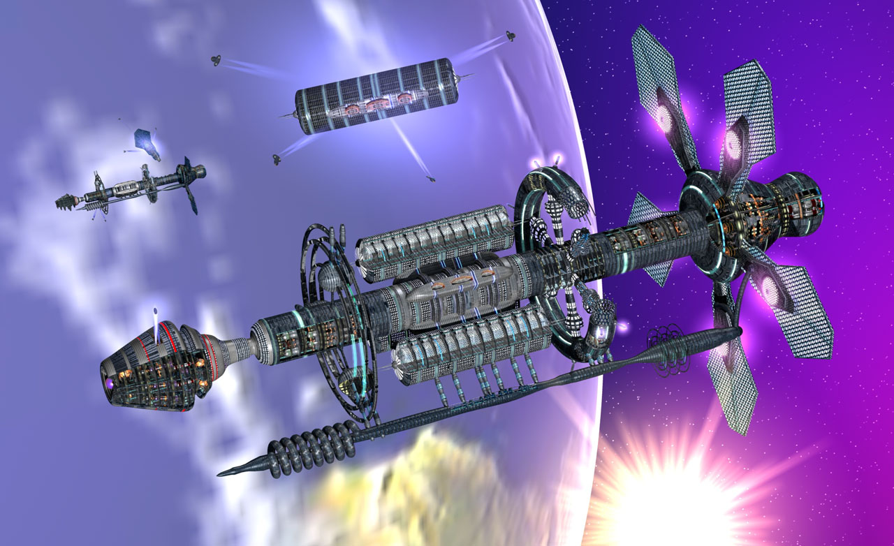 Die Arche basiert auf einem zentralen Mittelzylinder. Im heckseitigen Drittel befindet sich die Gitterstruktur der Fangfeldprojektoren für das Neutrino-Fangfeld. Größenangaben: Länge über alles: 4165 m Passagierzylinder: Höhe 815 m Dicke 250 m Zentralring: Durchmesser 1100 m Dicke 150 m |